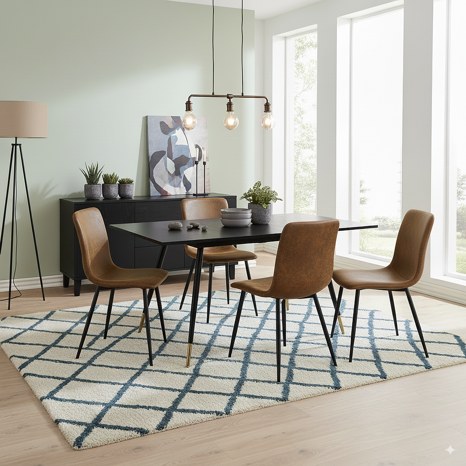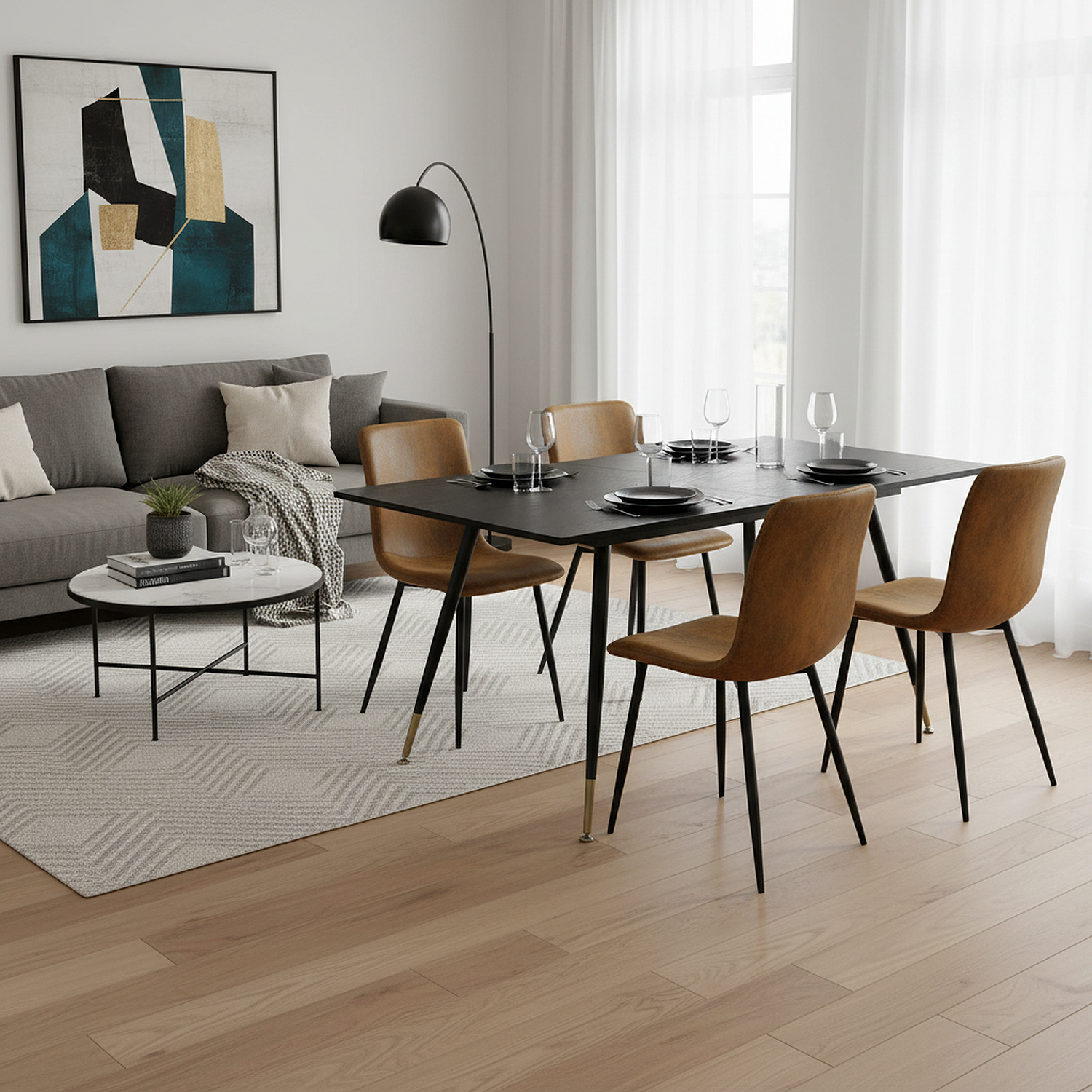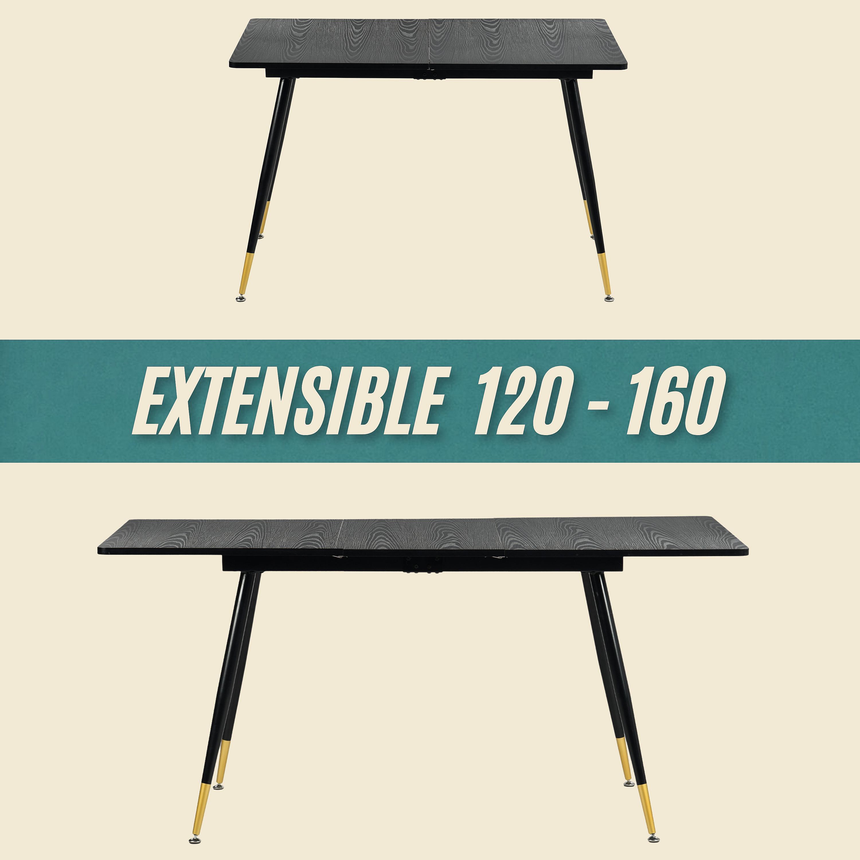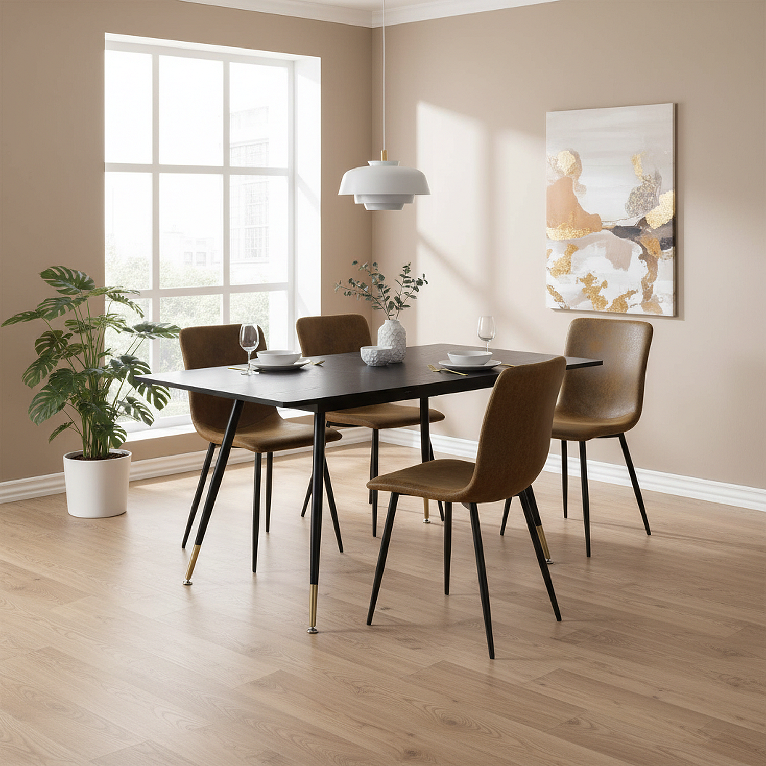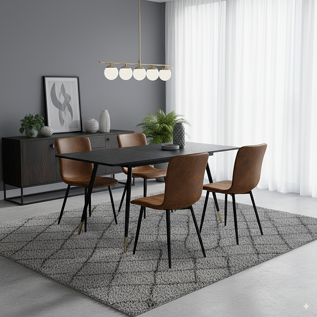 URBAN MEUBLE Ensemble table noire effet bois et 4 chaises suède brun