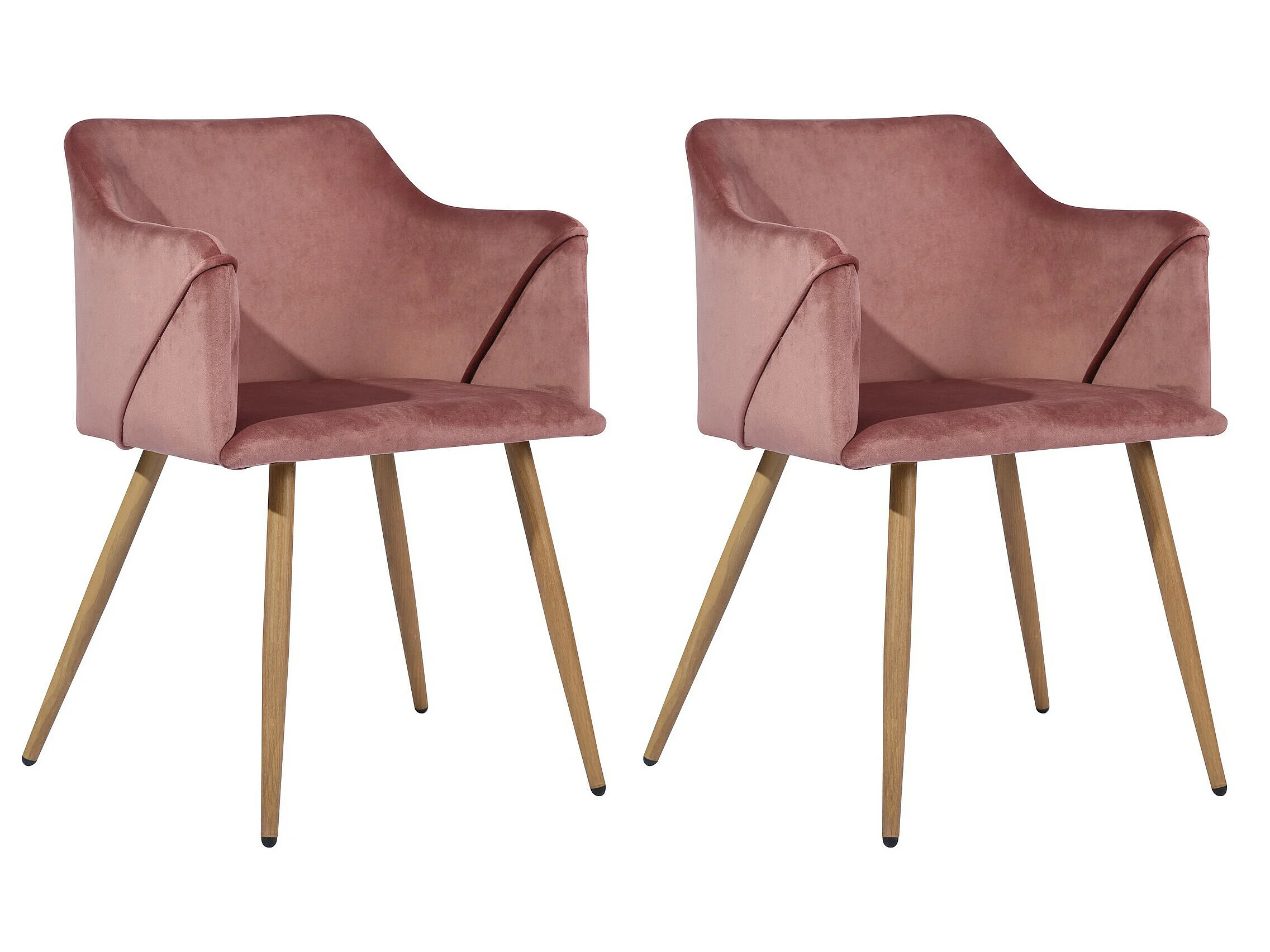 URBAN MEUBLE Lot de 2 chaises scandinaves velours rose avec accoudoirs pieds chêne 53*54*75cm