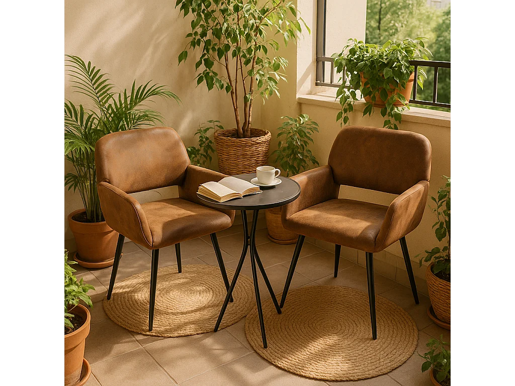 URBAN MEUBLE Lot de 4 chaises de salle à manger style industriel tissu marron rétro pieds noirs