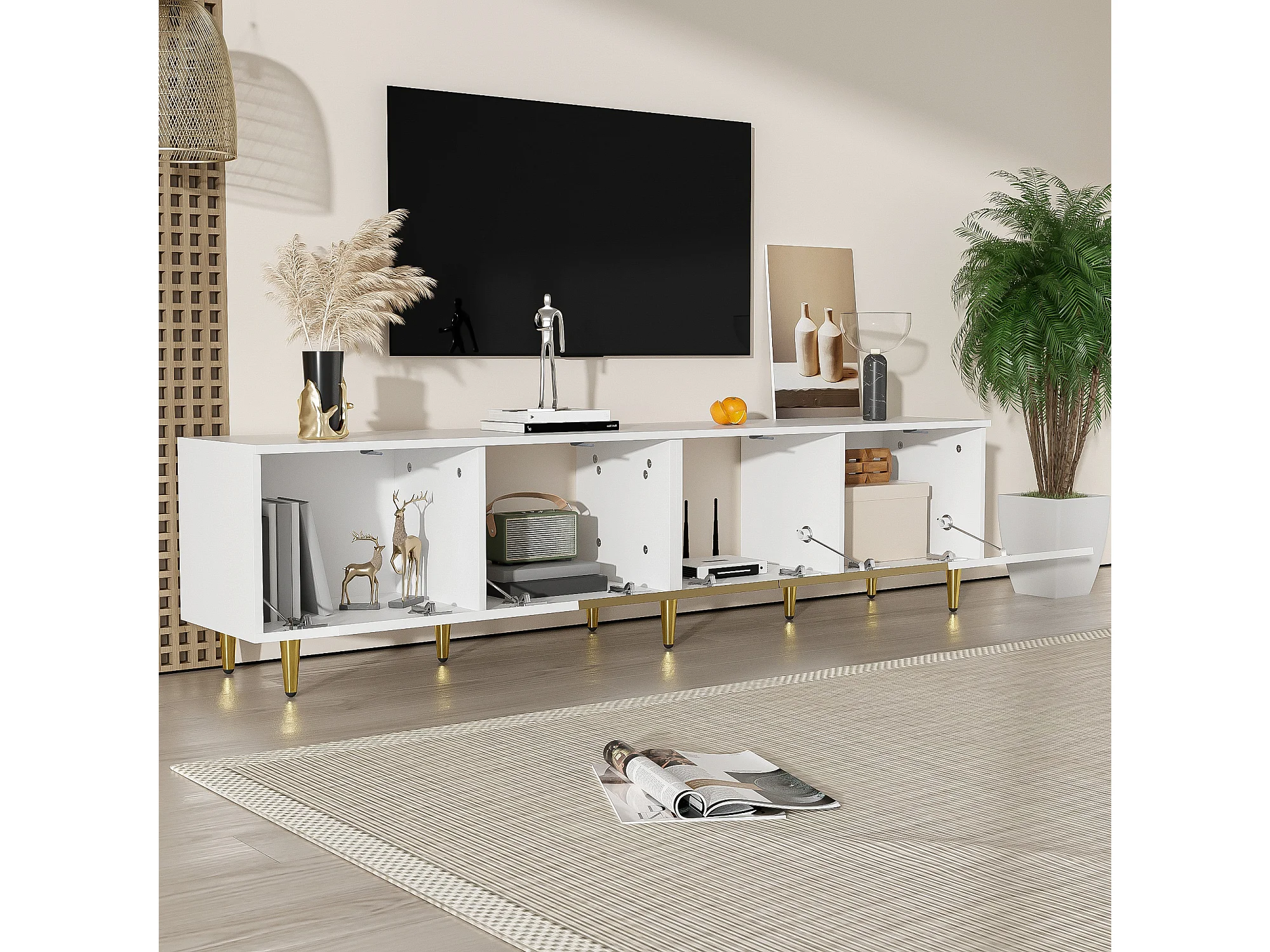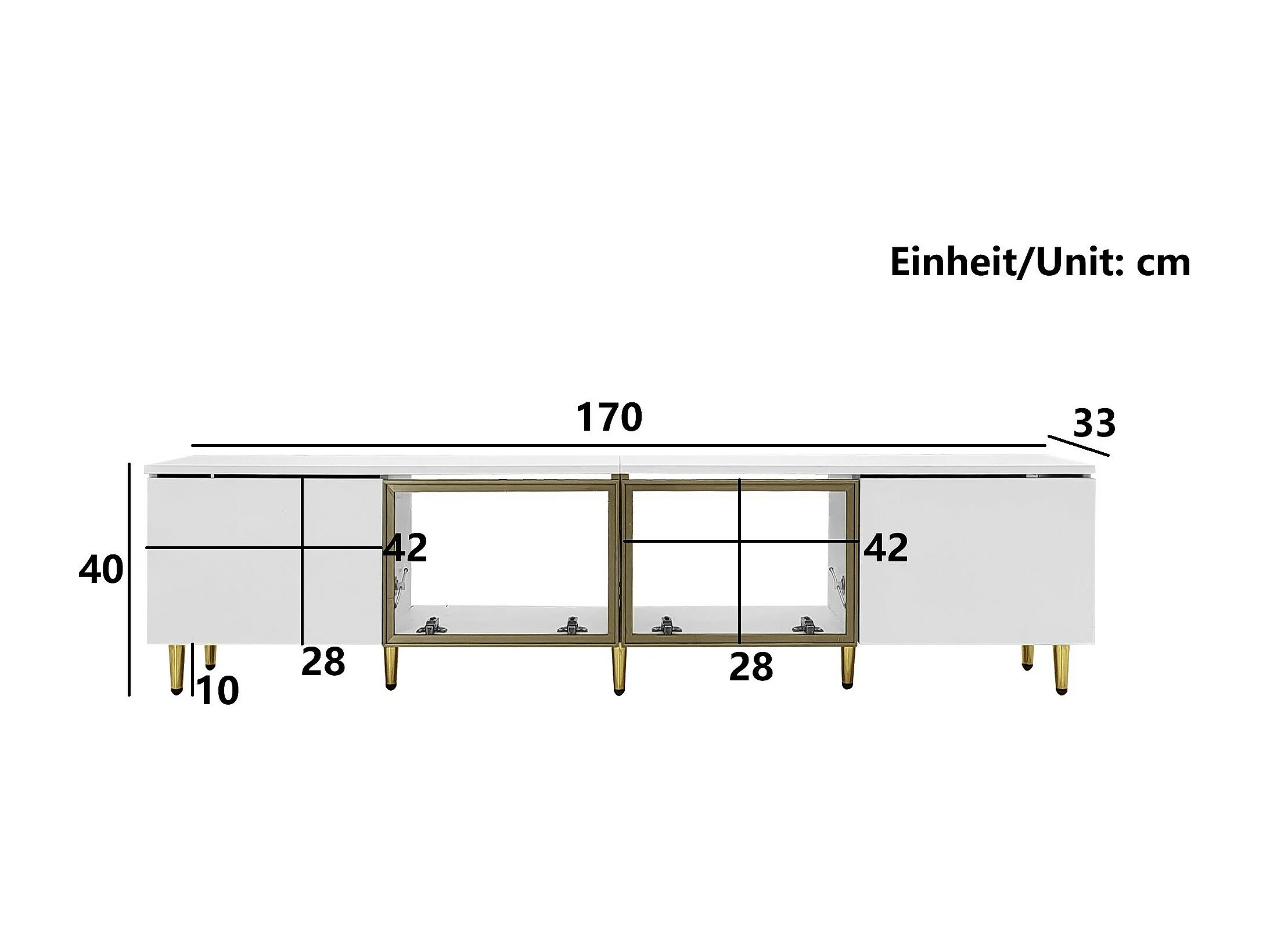 URBAN MEUBLE Meuble TV minimaliste blanc dorés 4 portes (2 portes en verre)