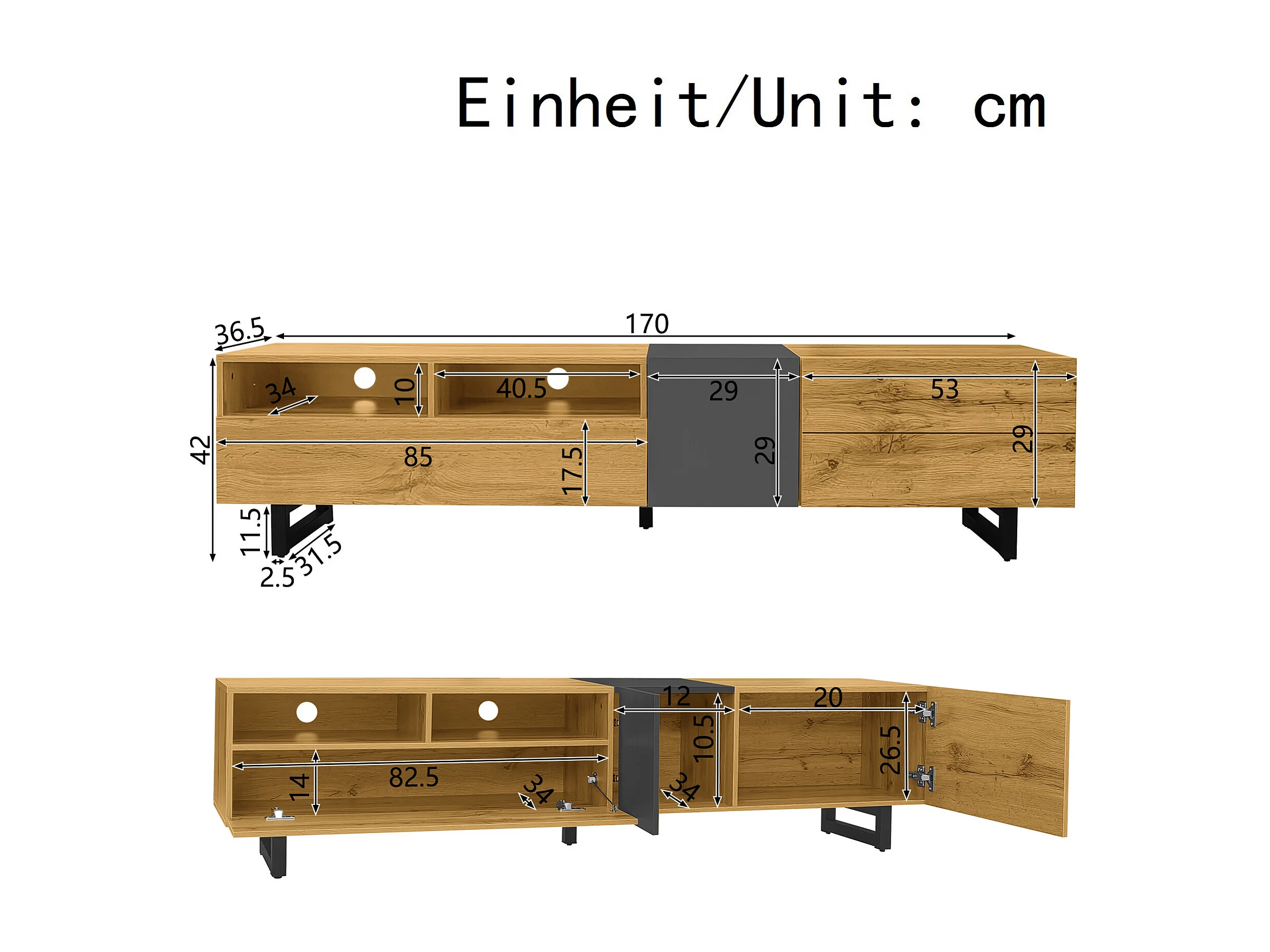 URBAN MEUBLE Meuble TV moderne aux couleurs contrastées avec grain de bois et gris 170 cm