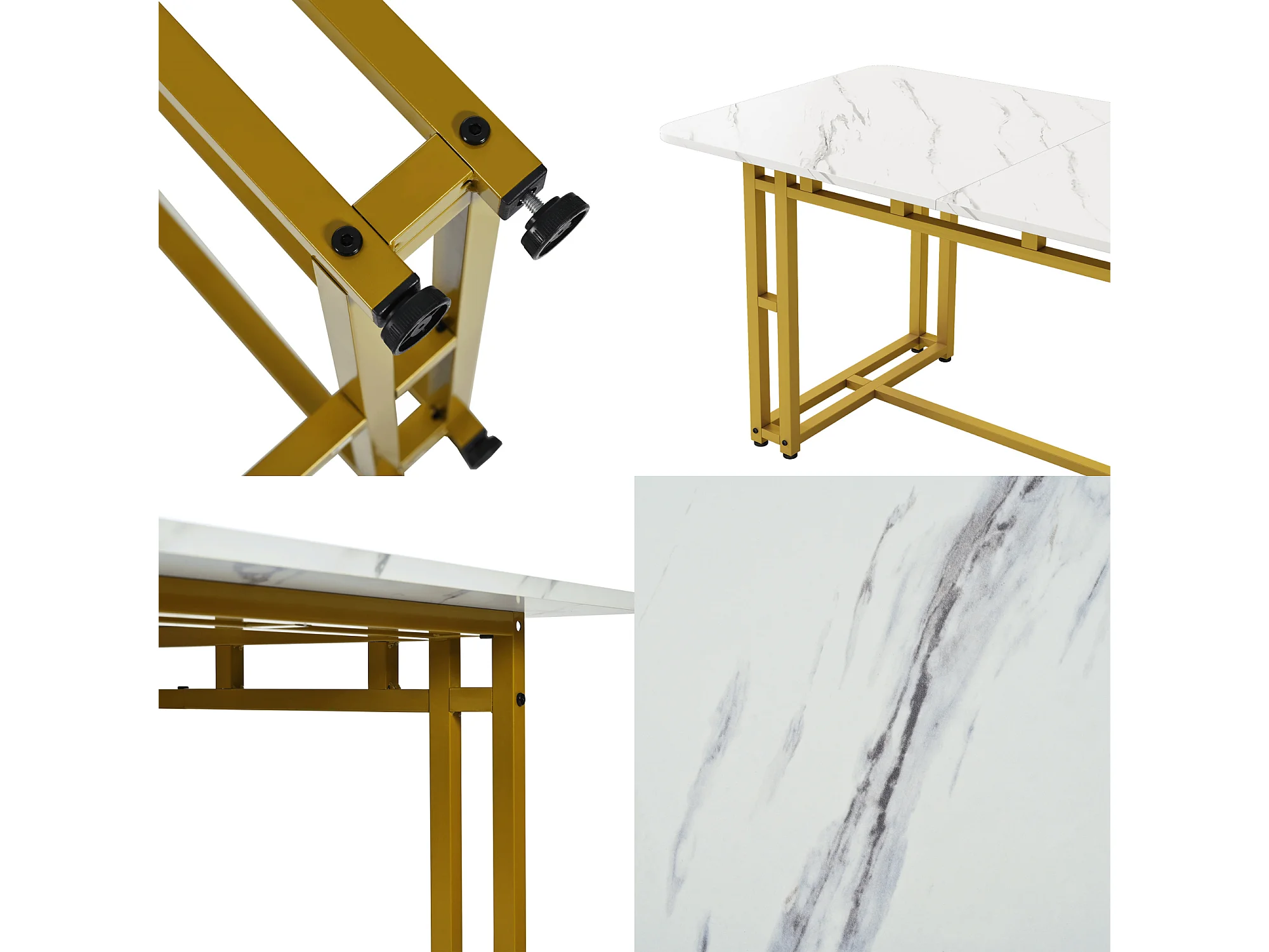 URBAN MEUBLE Table à mange rectangulaire moderne effet marbre blanc pieds dorés 120x70cm