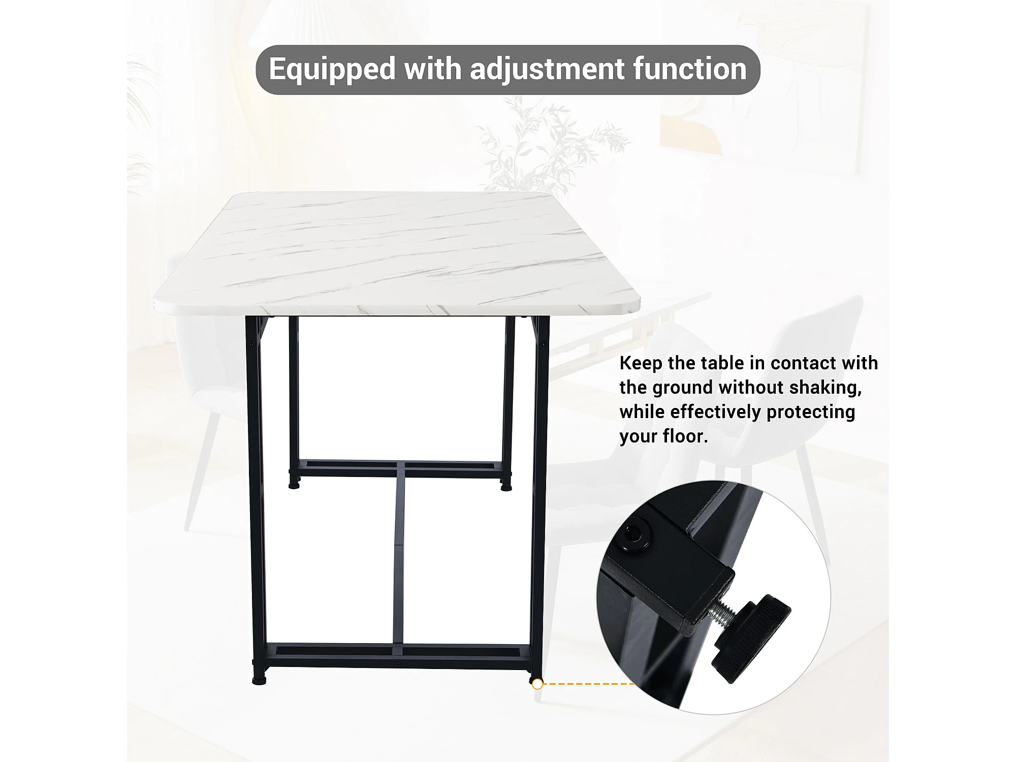 URBAN MEUBLE Table à mange rectangulaire moderne effet marbre blanc pieds noirs 120x70cm
