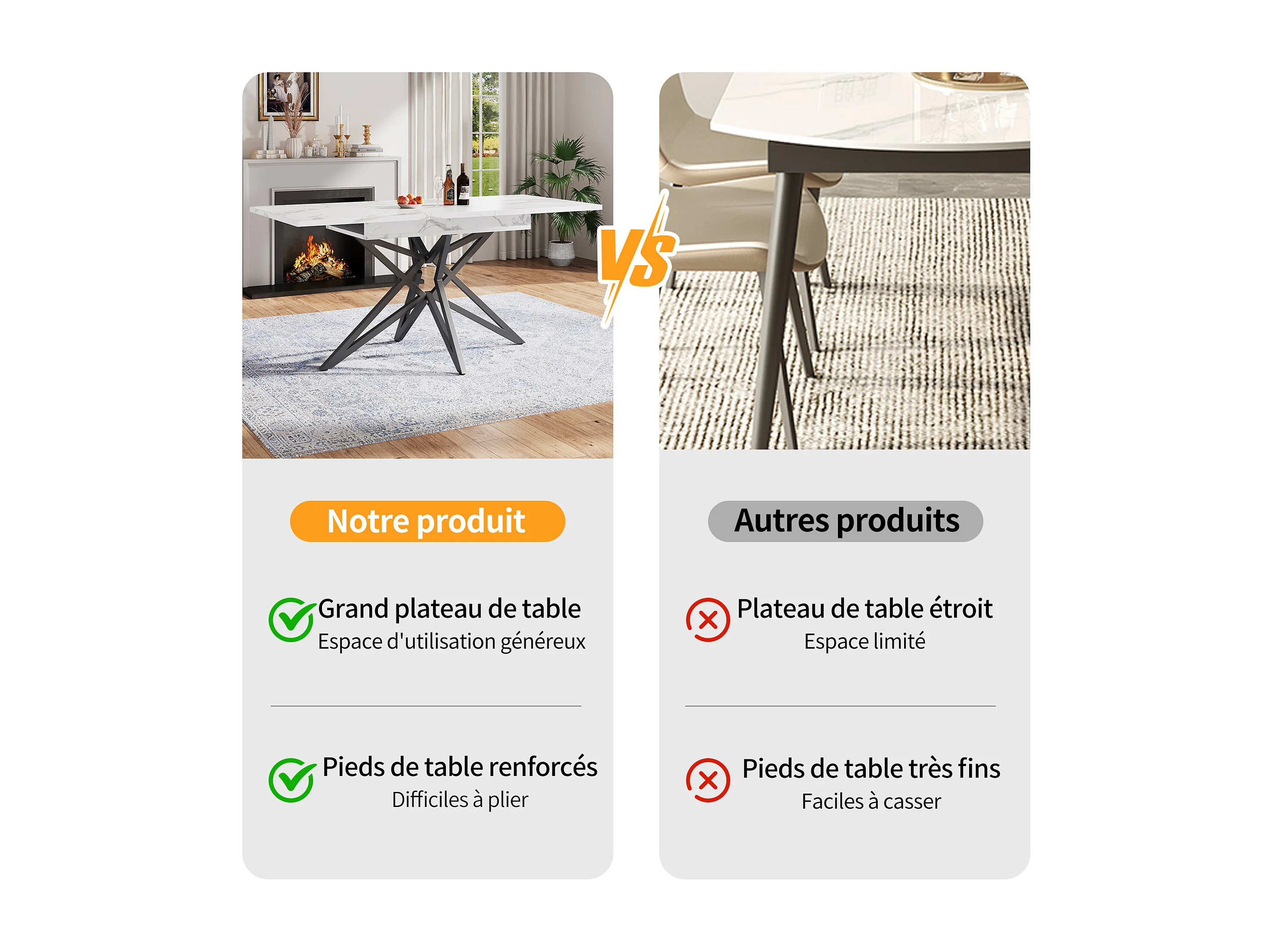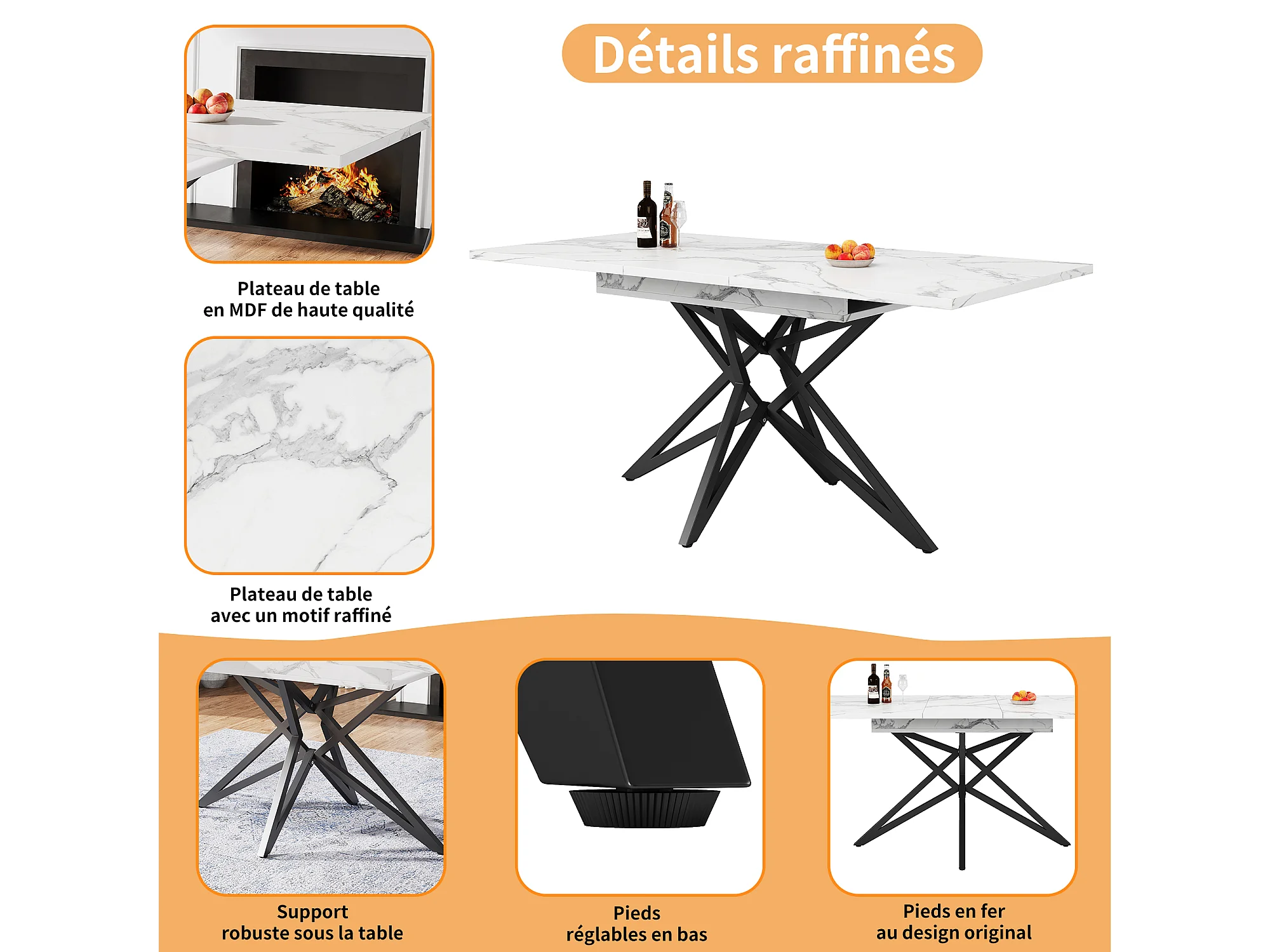 URBAN MEUBLE Table à manger extensible imitation marbre blanc 120-160cm et pieds noir en forme d'étoile