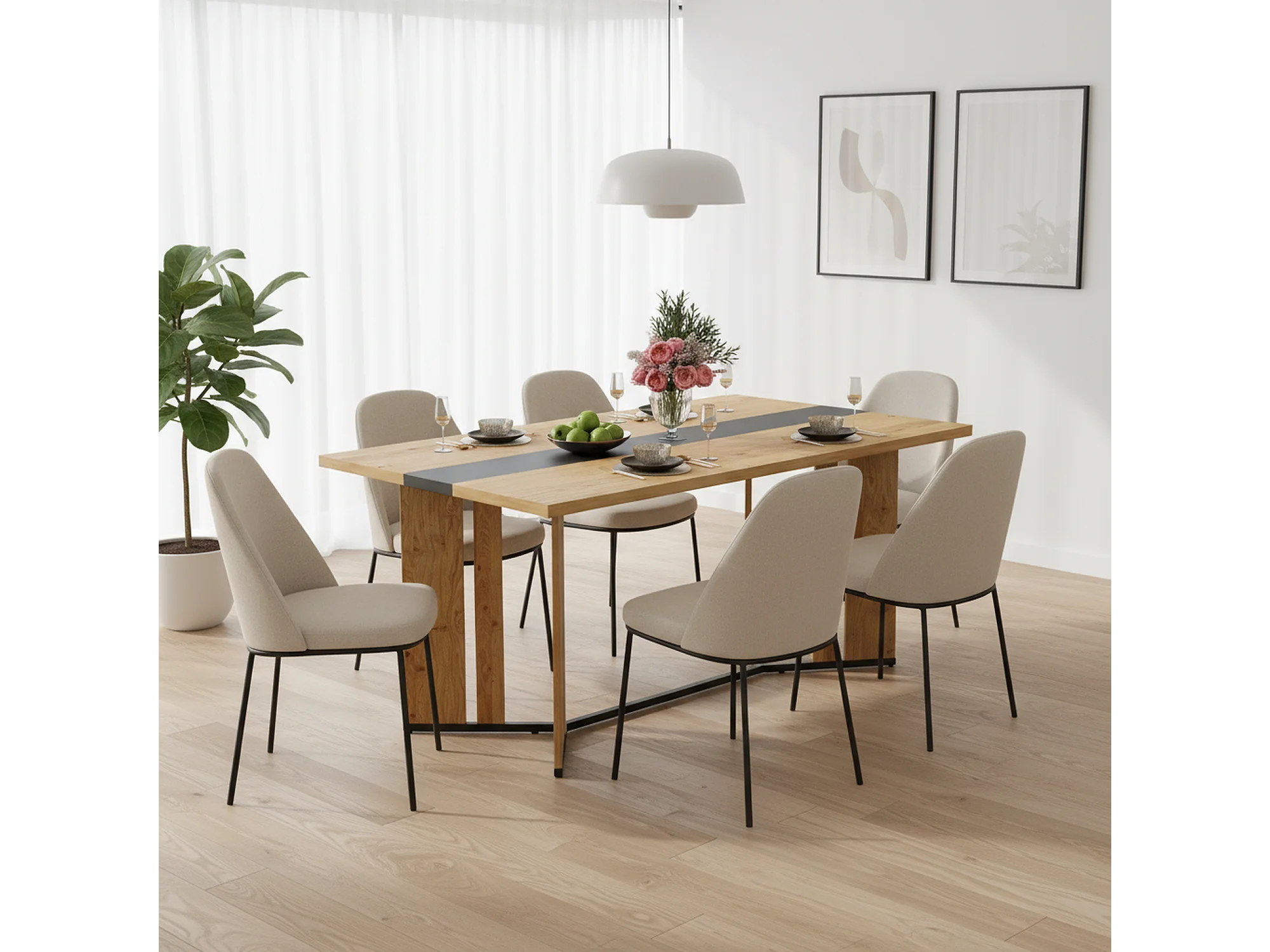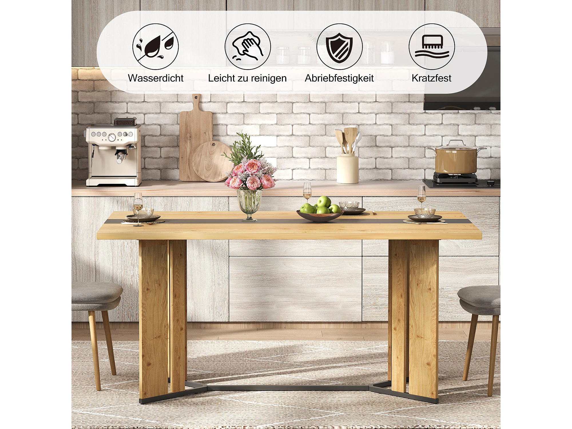URBAN MEUBLE Table à manger rectangulaire effet chêne naturel et noir 150*80cm