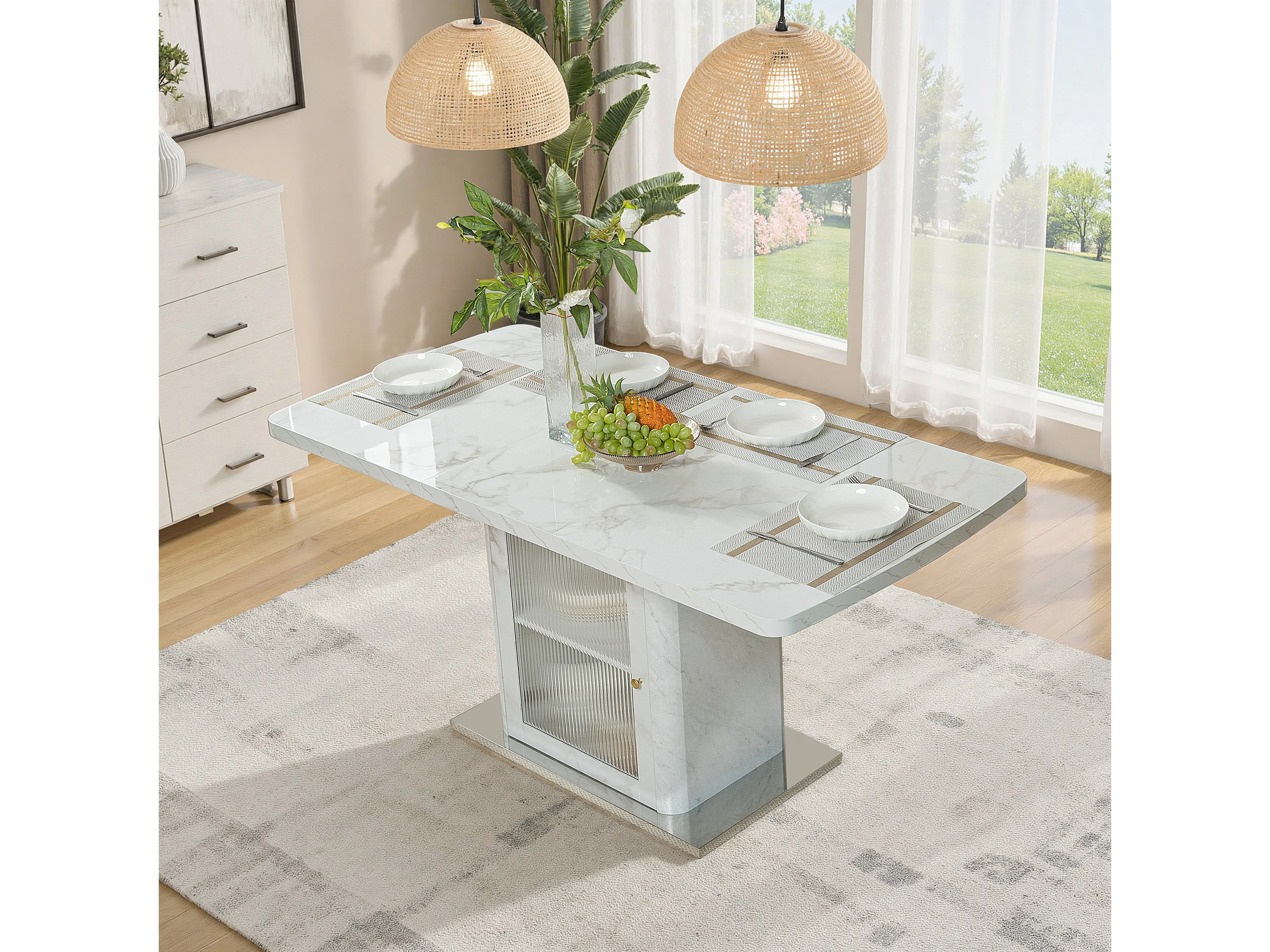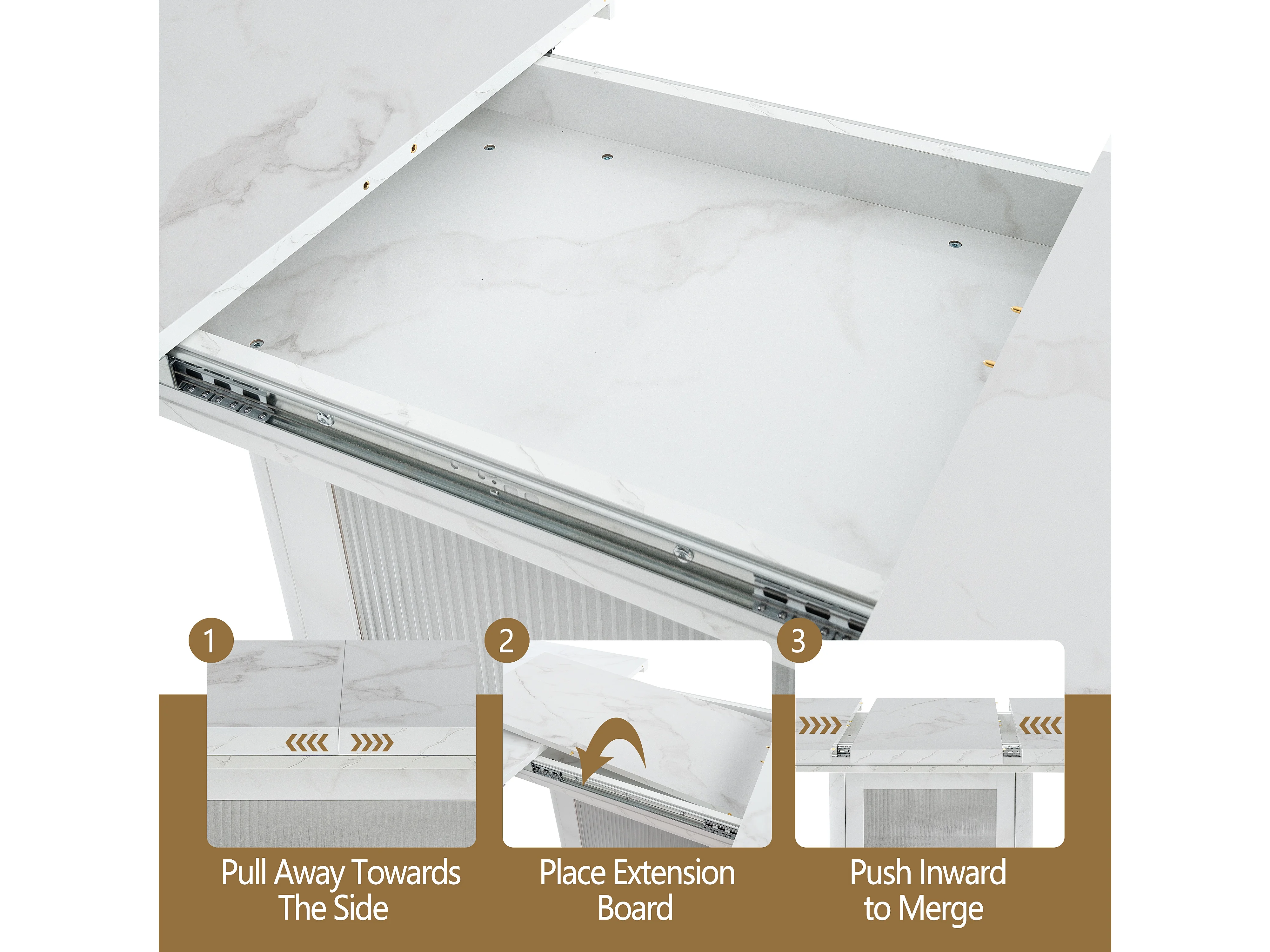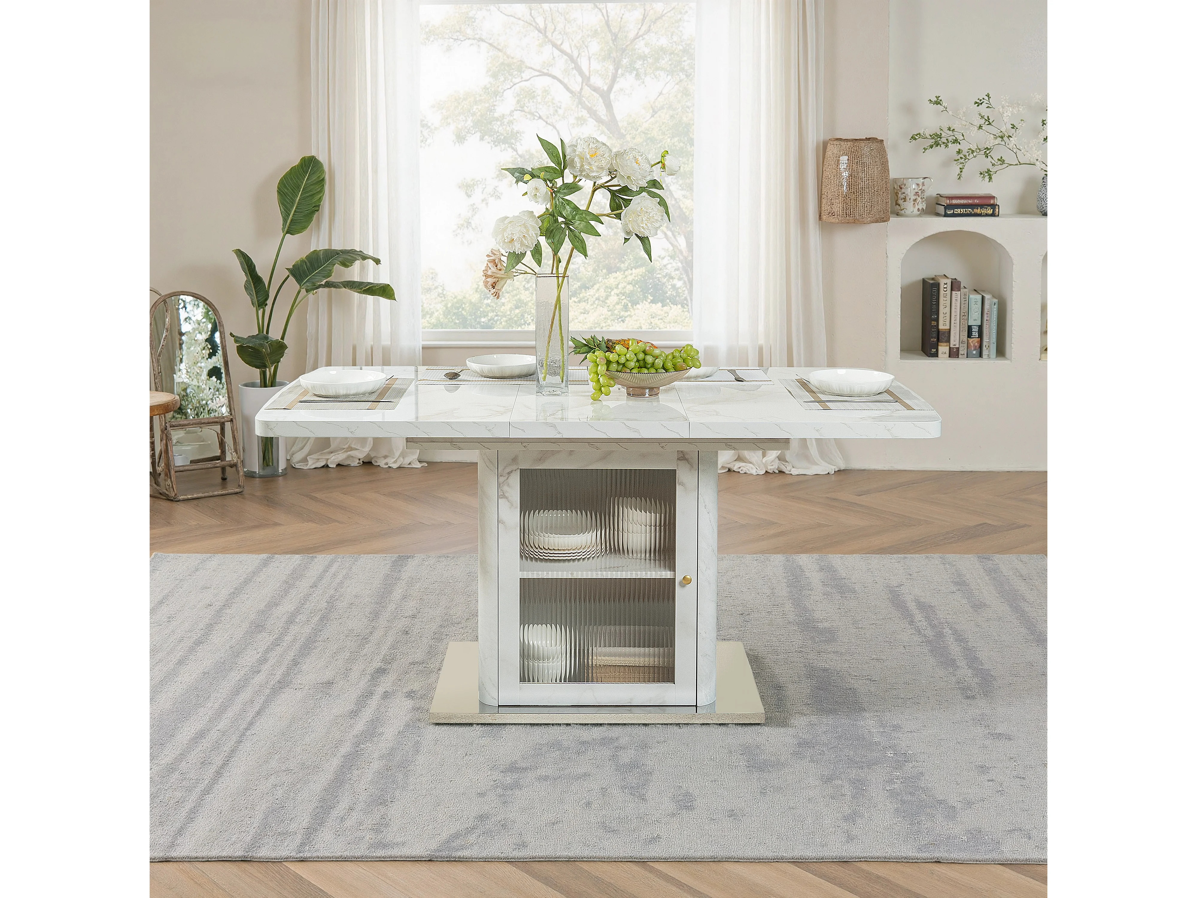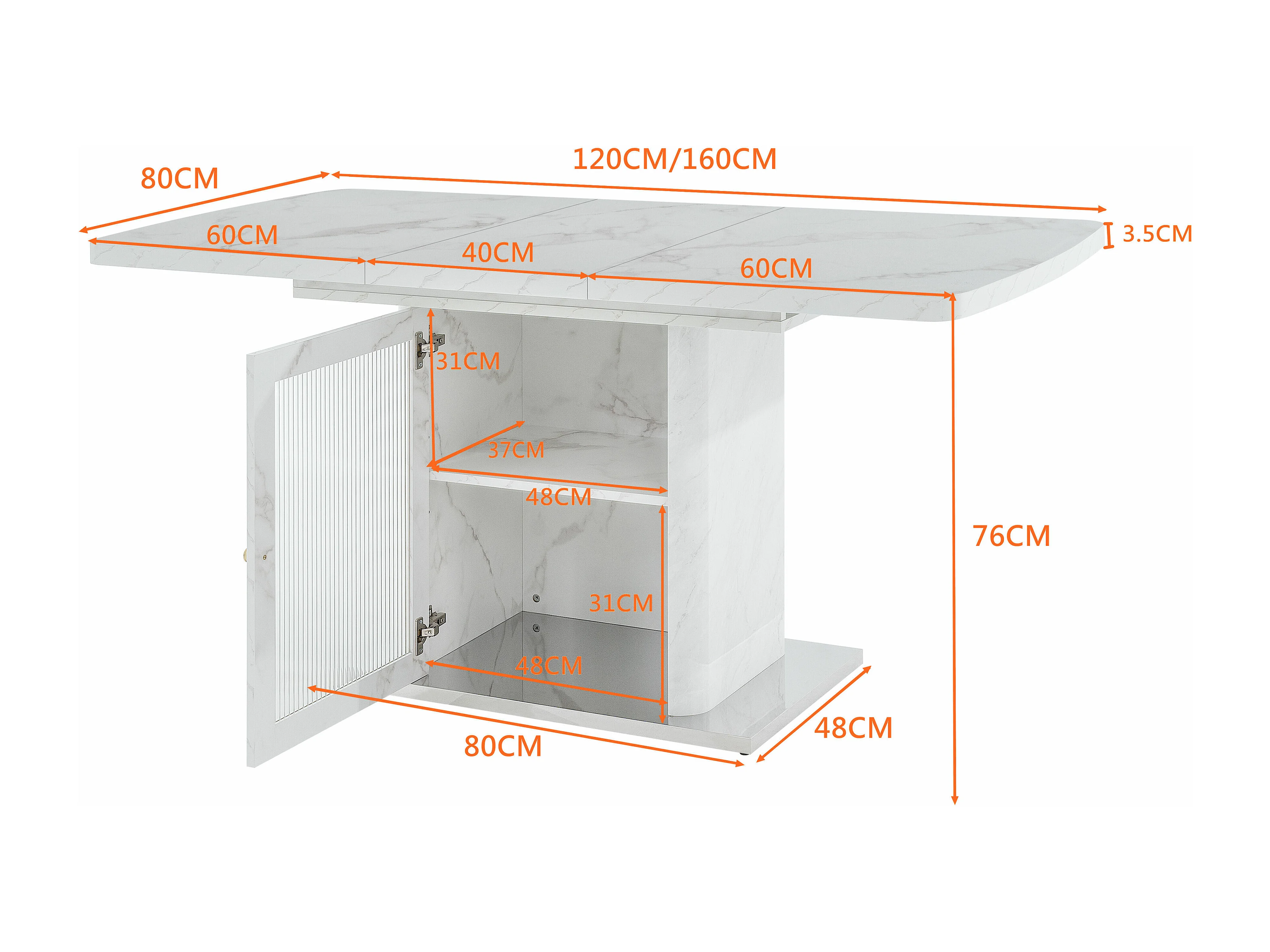 URBAN MEUBLE Table à manger rectangulaire extensible 120-160cm effet marbre blanc imprimé avec pied-armoire