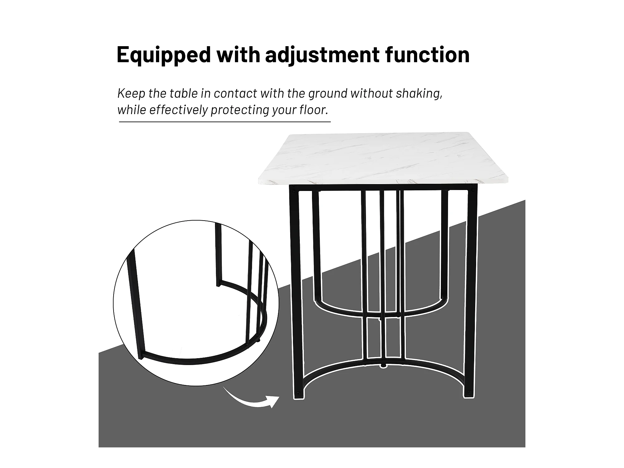 URBAN MEUBLE Table à manger rectangulaire moderne effet marbre blanc structure en métal noir 140 x 80 cm