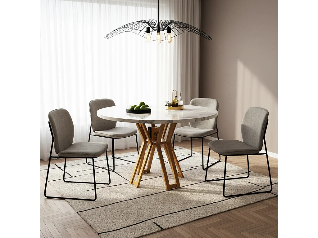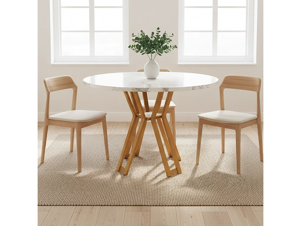 URBAN MEUBLE Table à manger ronde effet blanc marbre et piétement métallique doré 100x100cm