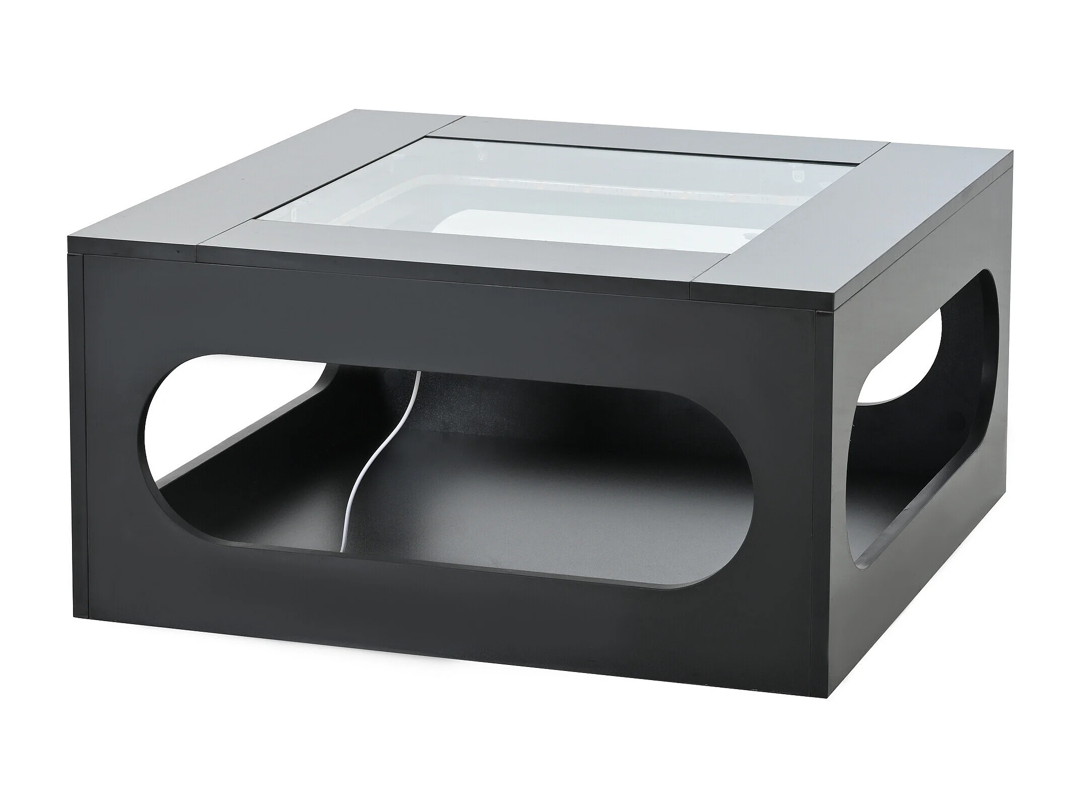 URBAN MEUBLE Table basse carrée noire avec plateau en verre trempé et éclairage LED 70x70x35cm