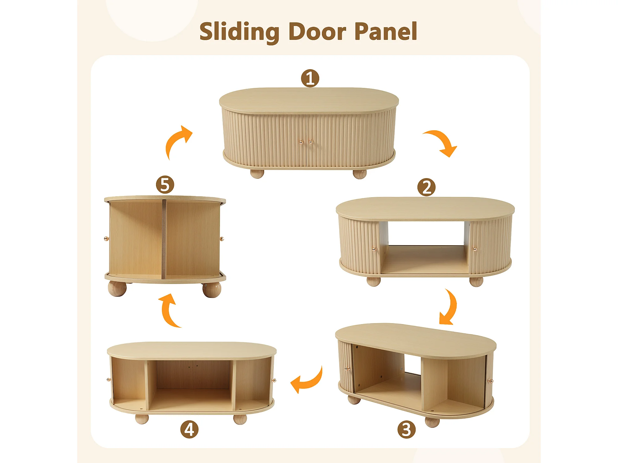 URBAN MEUBLE Table basse ovale effet bois clair 2 portes coulissantes multifonctionnel