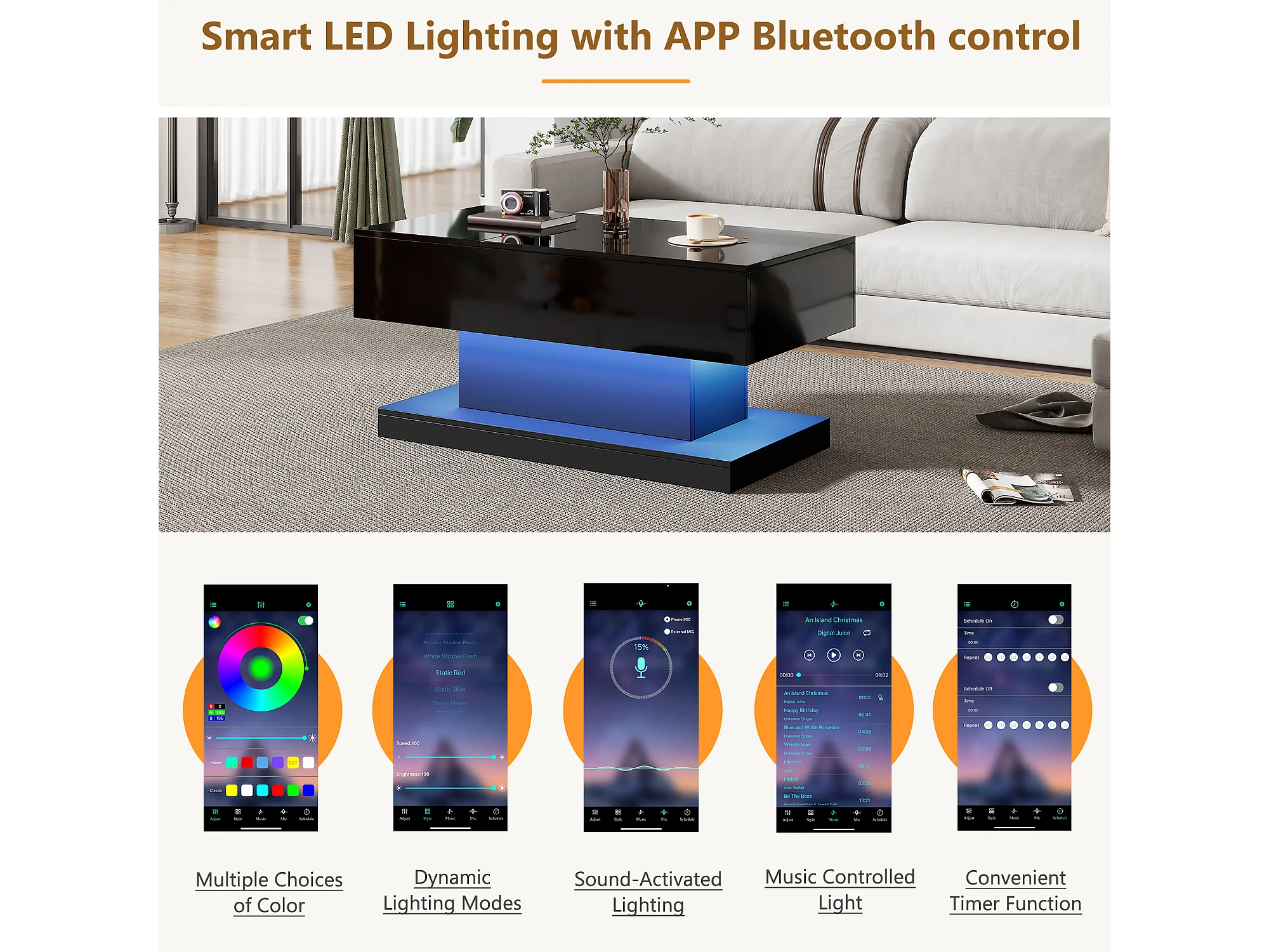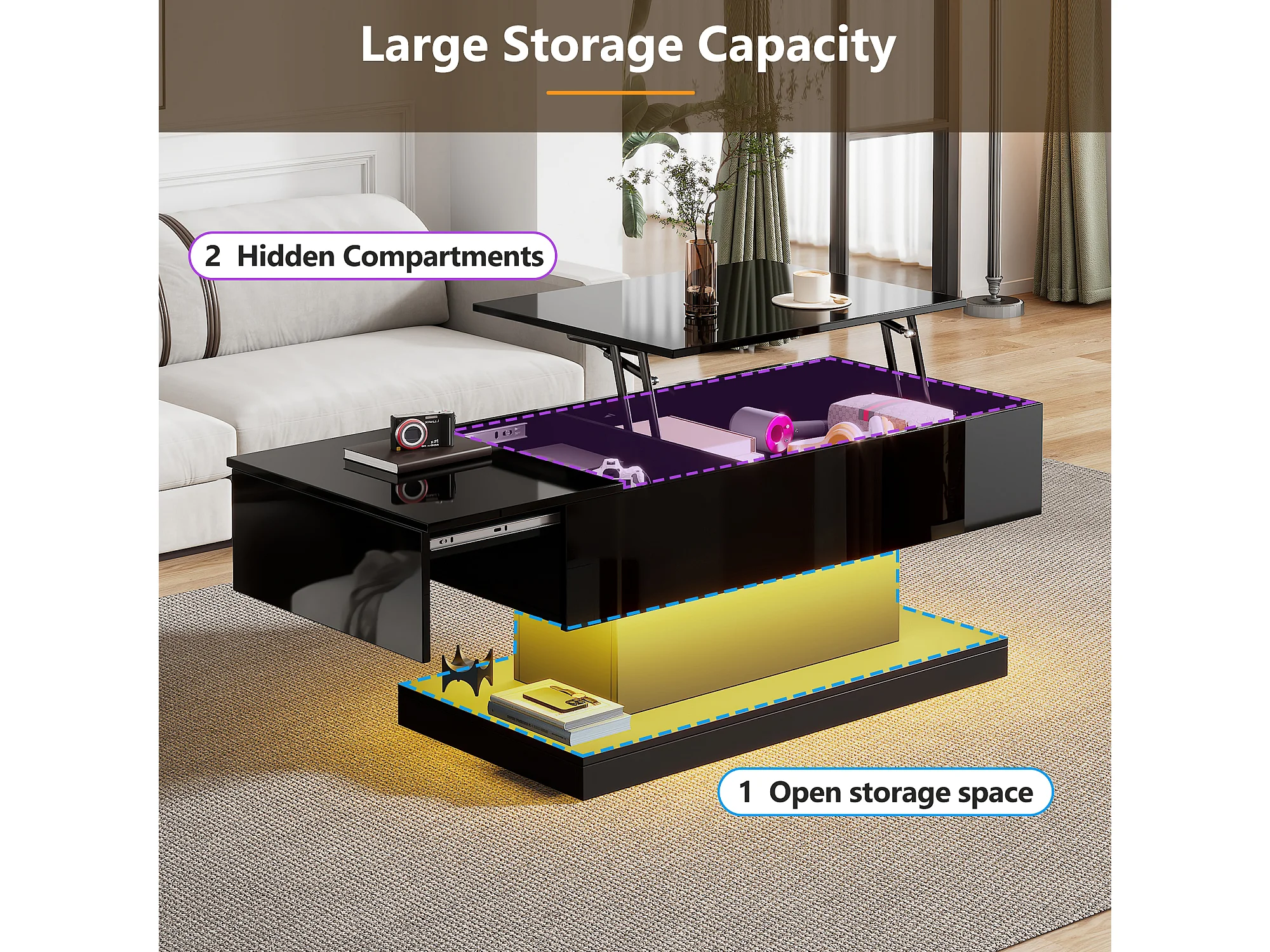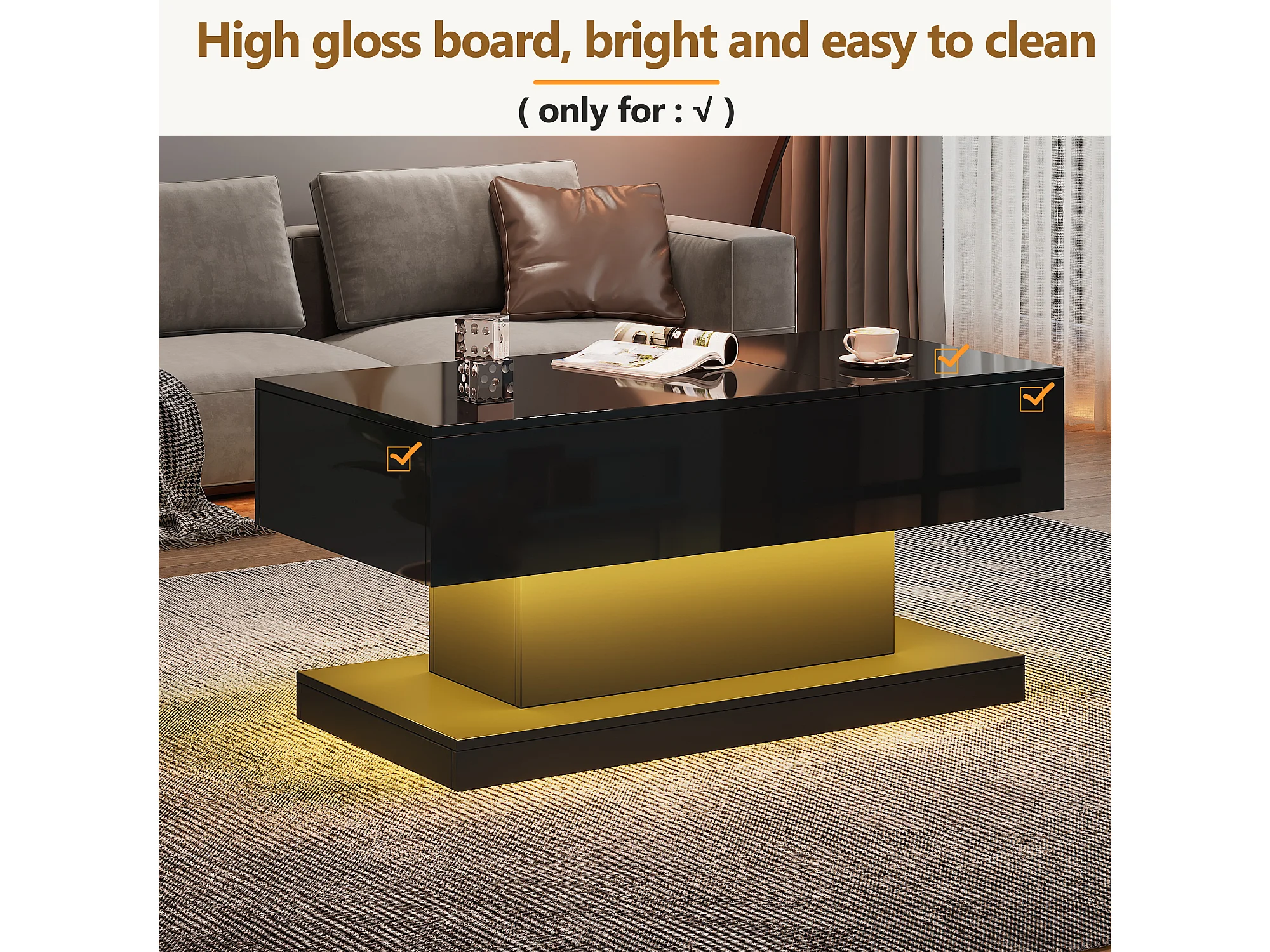 URBAN MEUBLE Table basse relevable laqué noire avec éclairage LED 100x50 cm