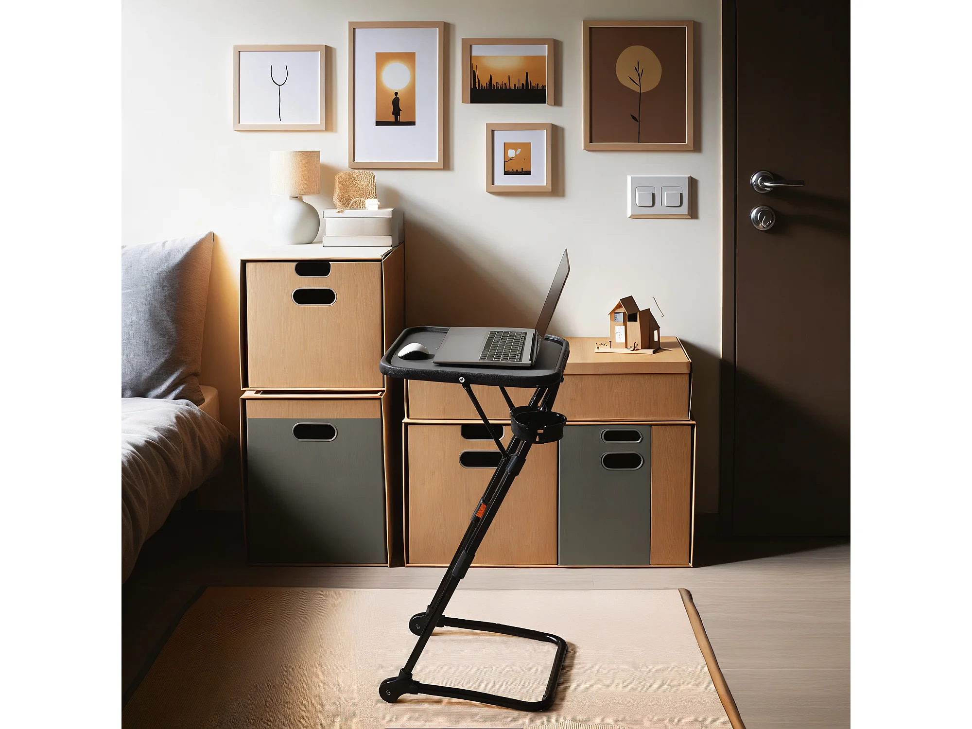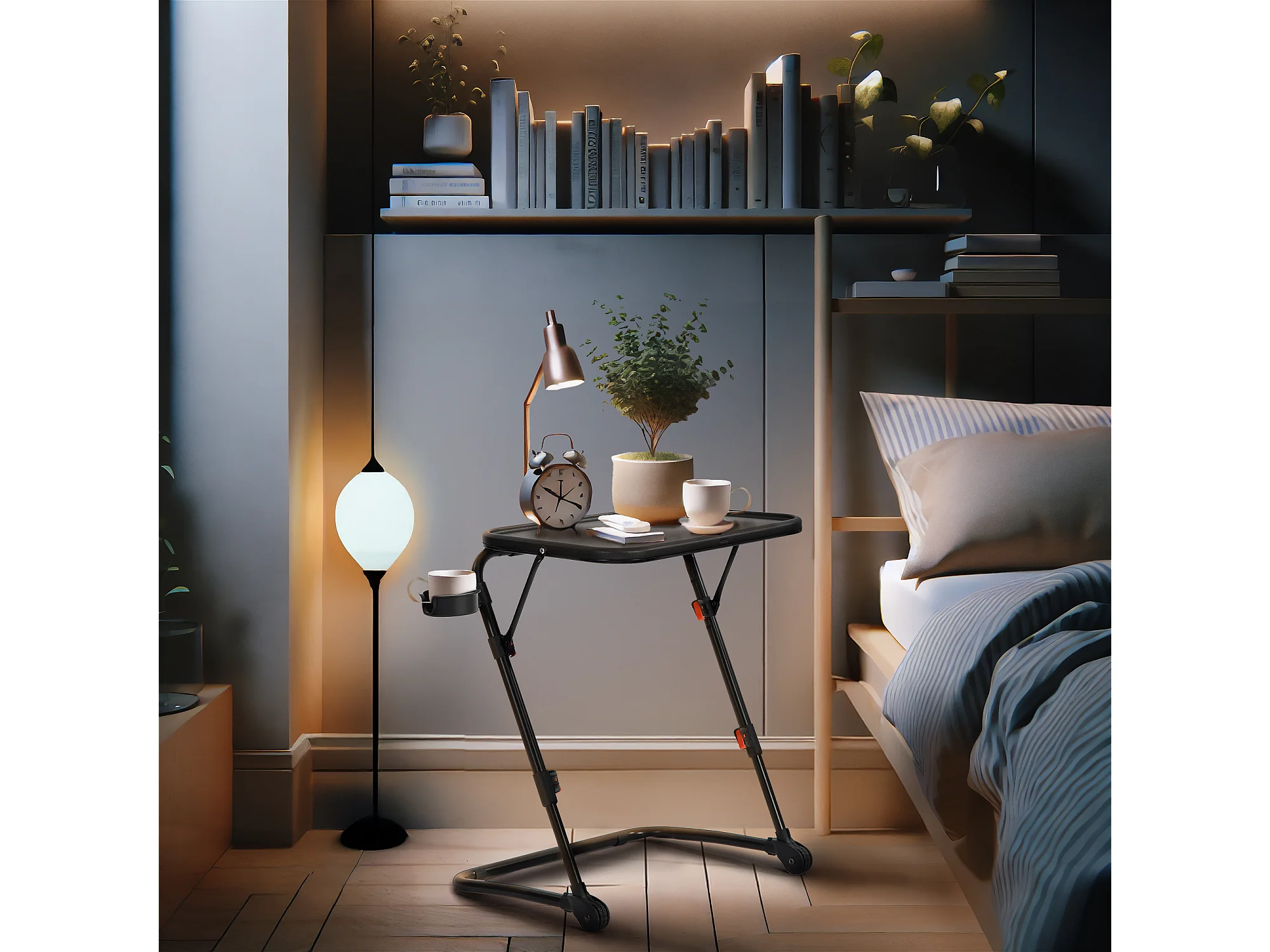 Urban Meuble Table de Maquillage Pliante Noire, Table de Chevet, Design Moderne, Métal Léger, Polyvalente et Gain de Place