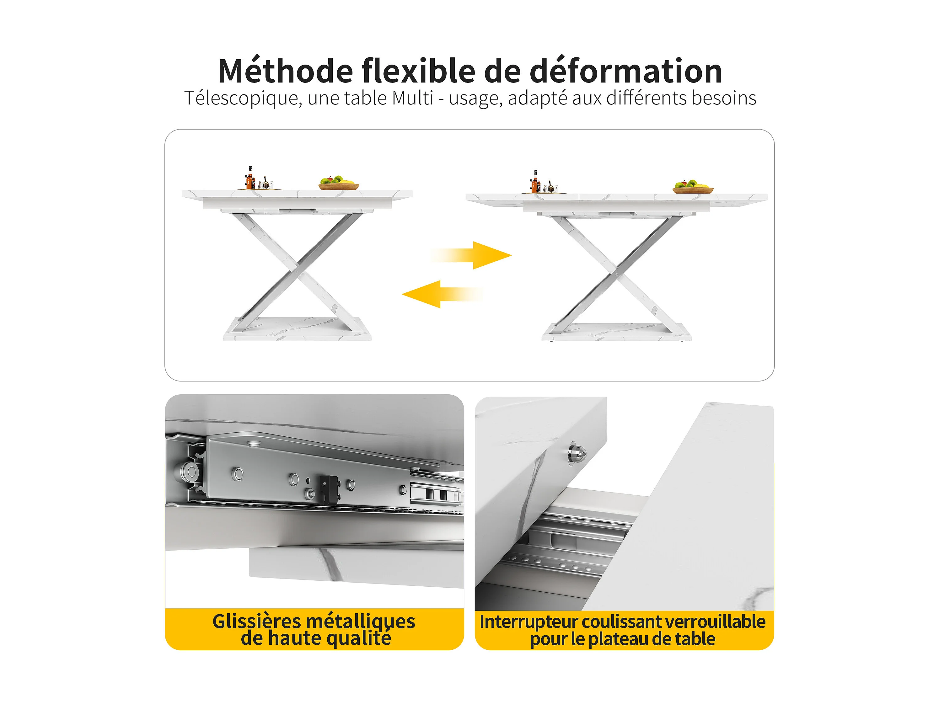 URBAN MEUBLE Table de salle à manger extensible effet marbre et pieds croisés 118-157cm