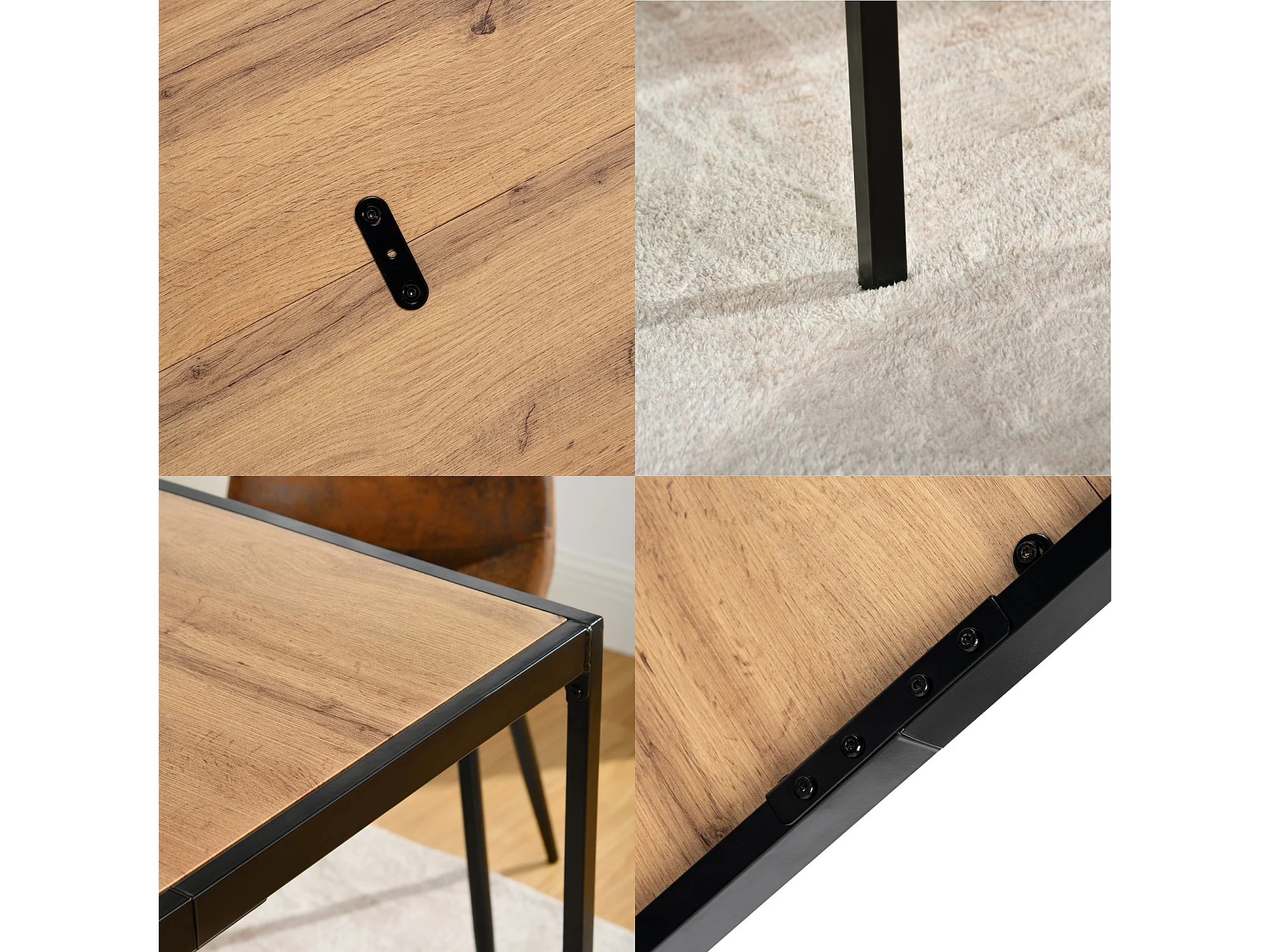 URBAN MEUBLE Table de salle à manger rectangulaire effet bois de style industriel pieds noirs 120x75cm