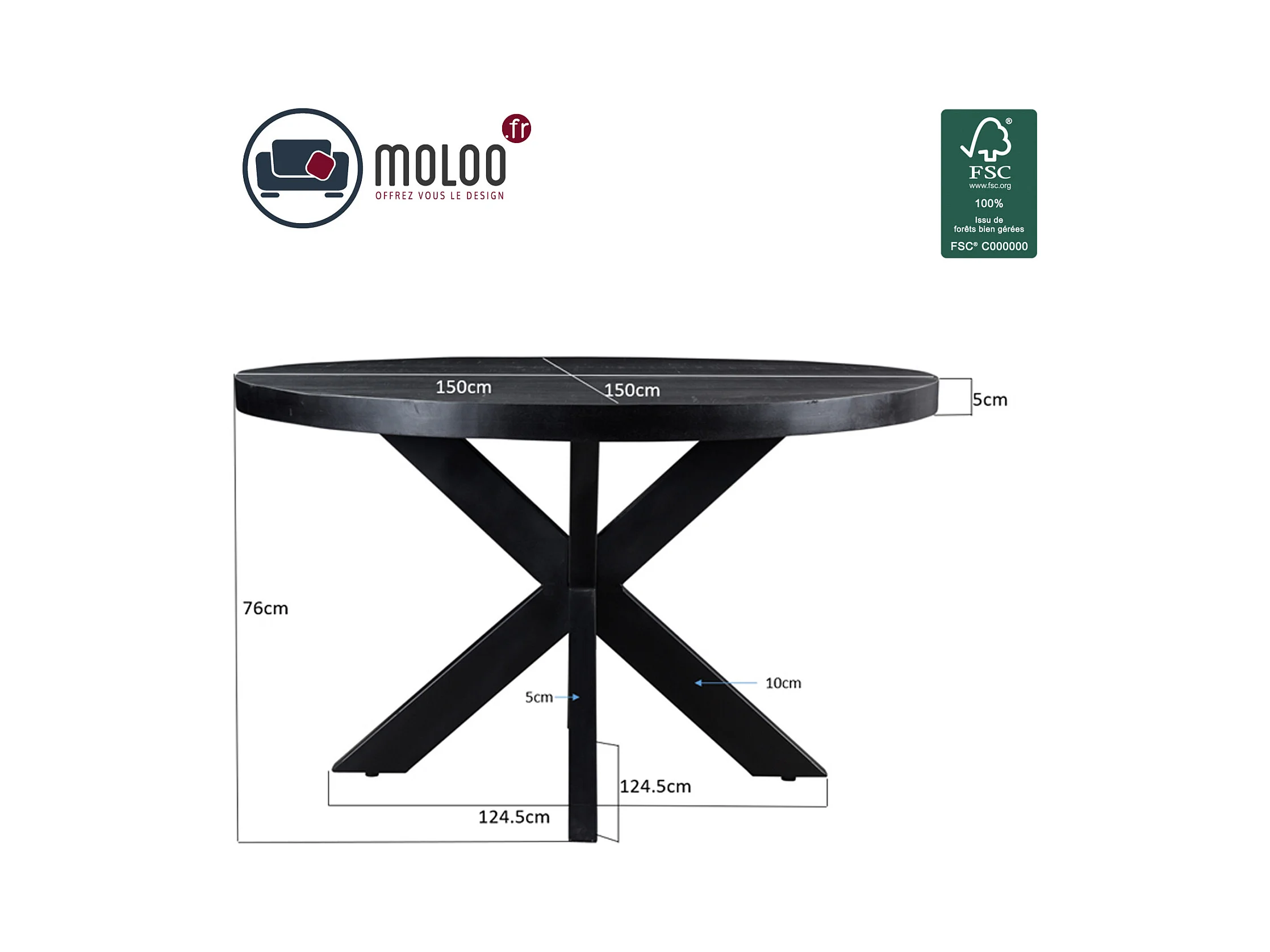 UZES-Table à manger 6/8 personnes 180 cm en bois massif noir