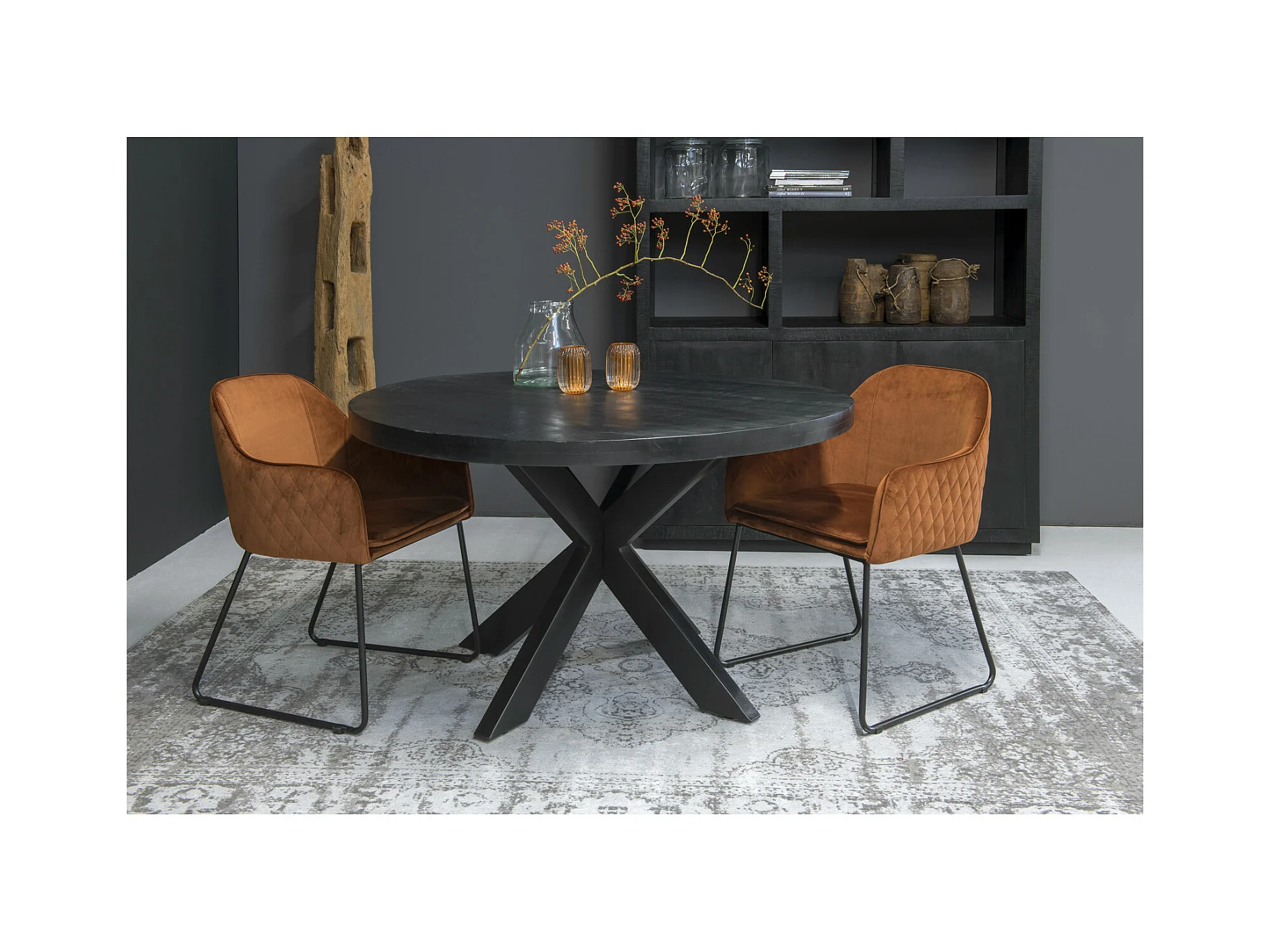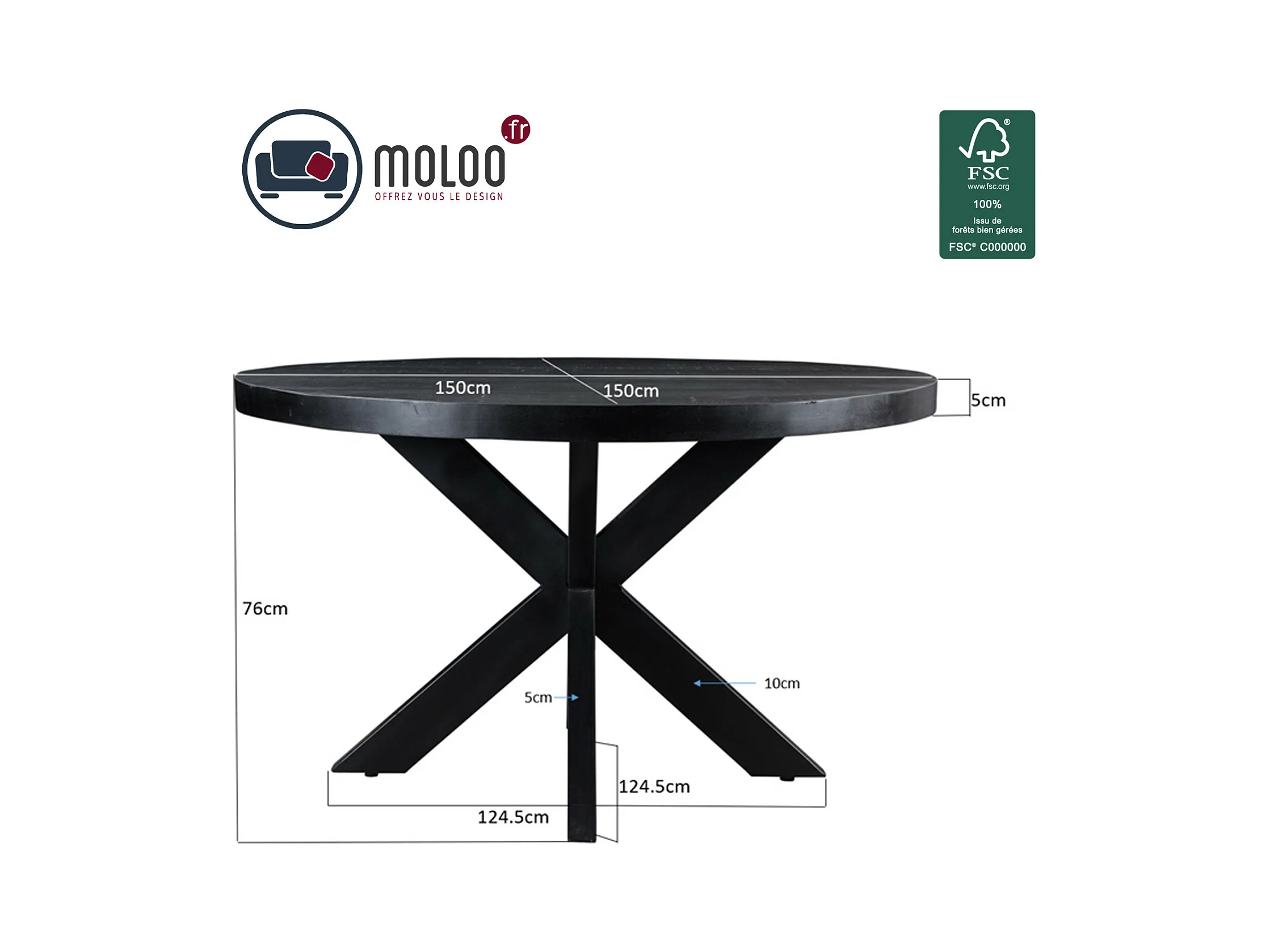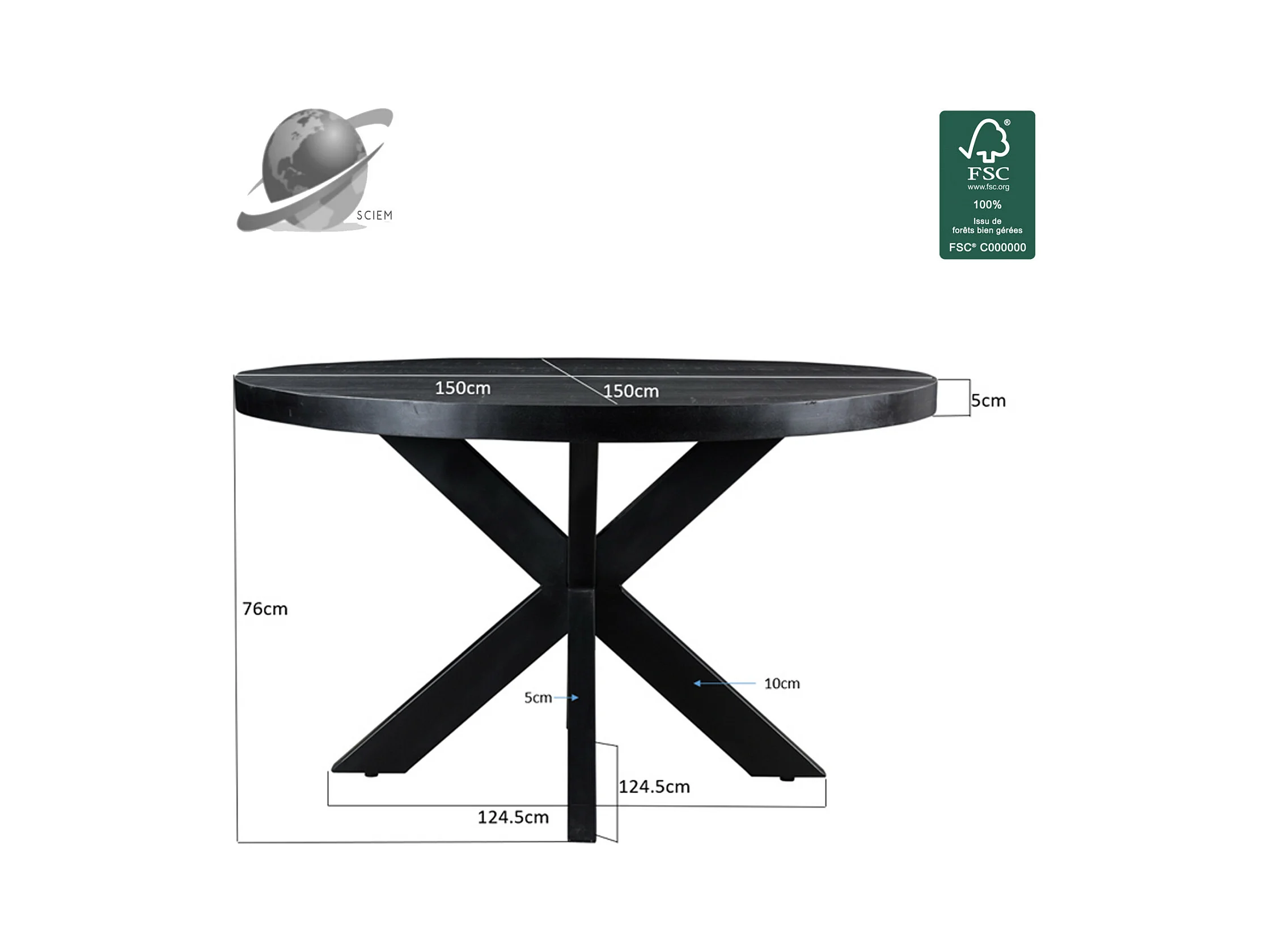 UZES-Table à manger ronde 6 personnes 150 cm en bois massif noir