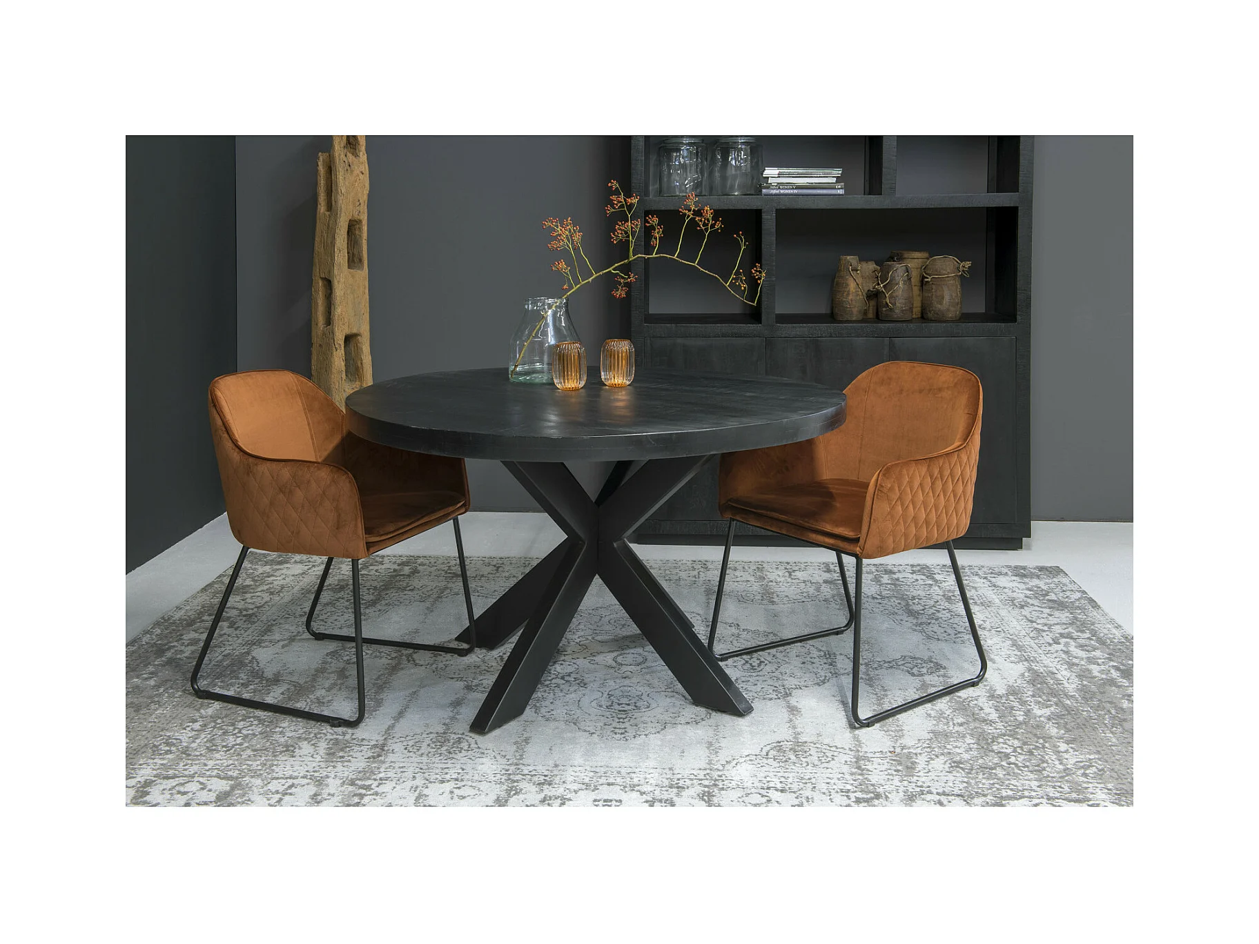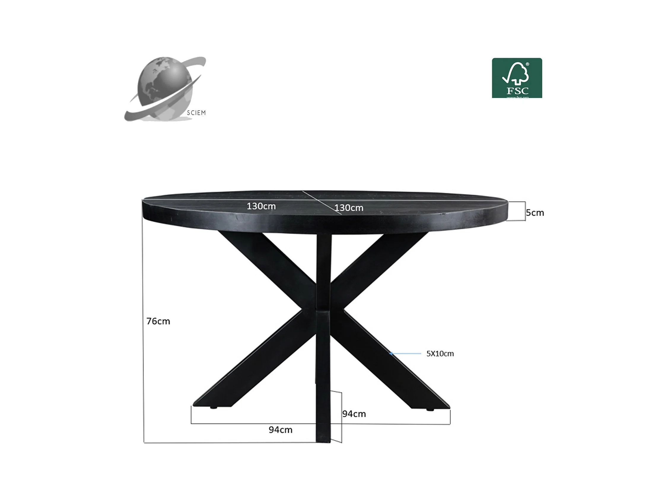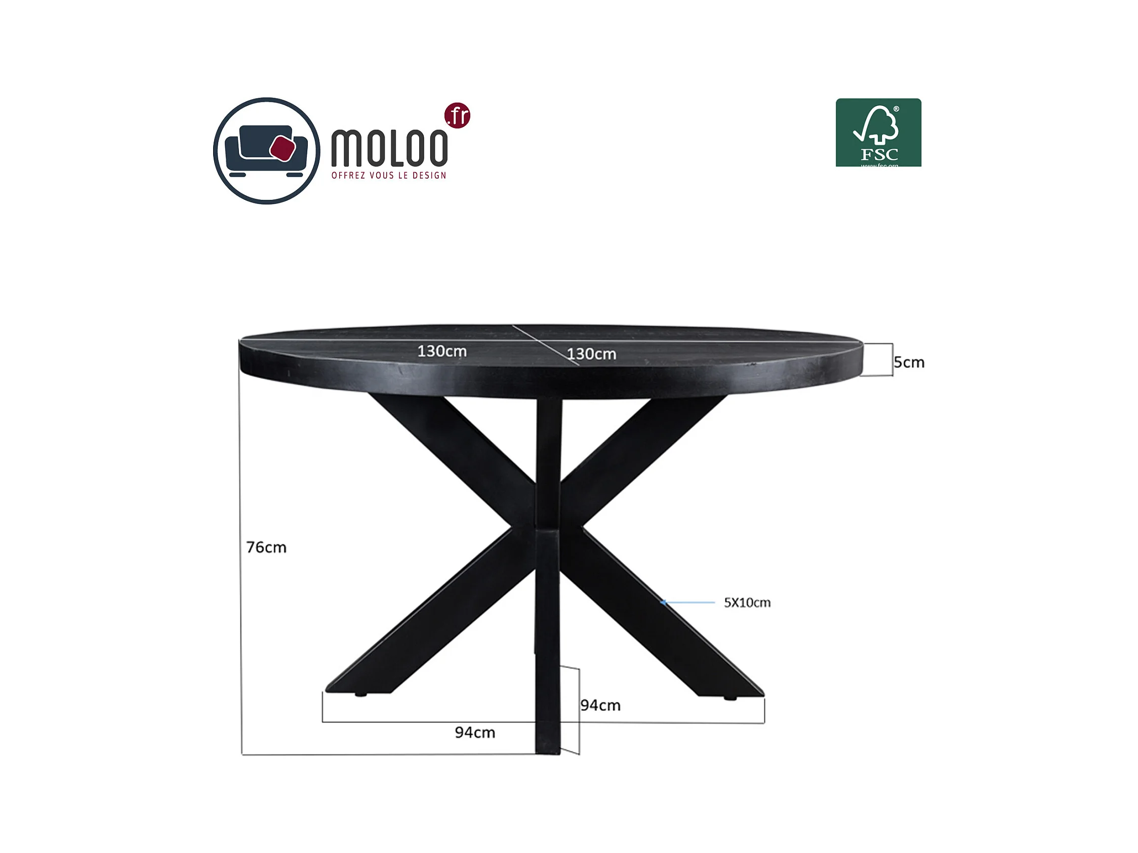 UZES-Table à manger ronde 4/ 6 personnes 130 cm en bois massif noir