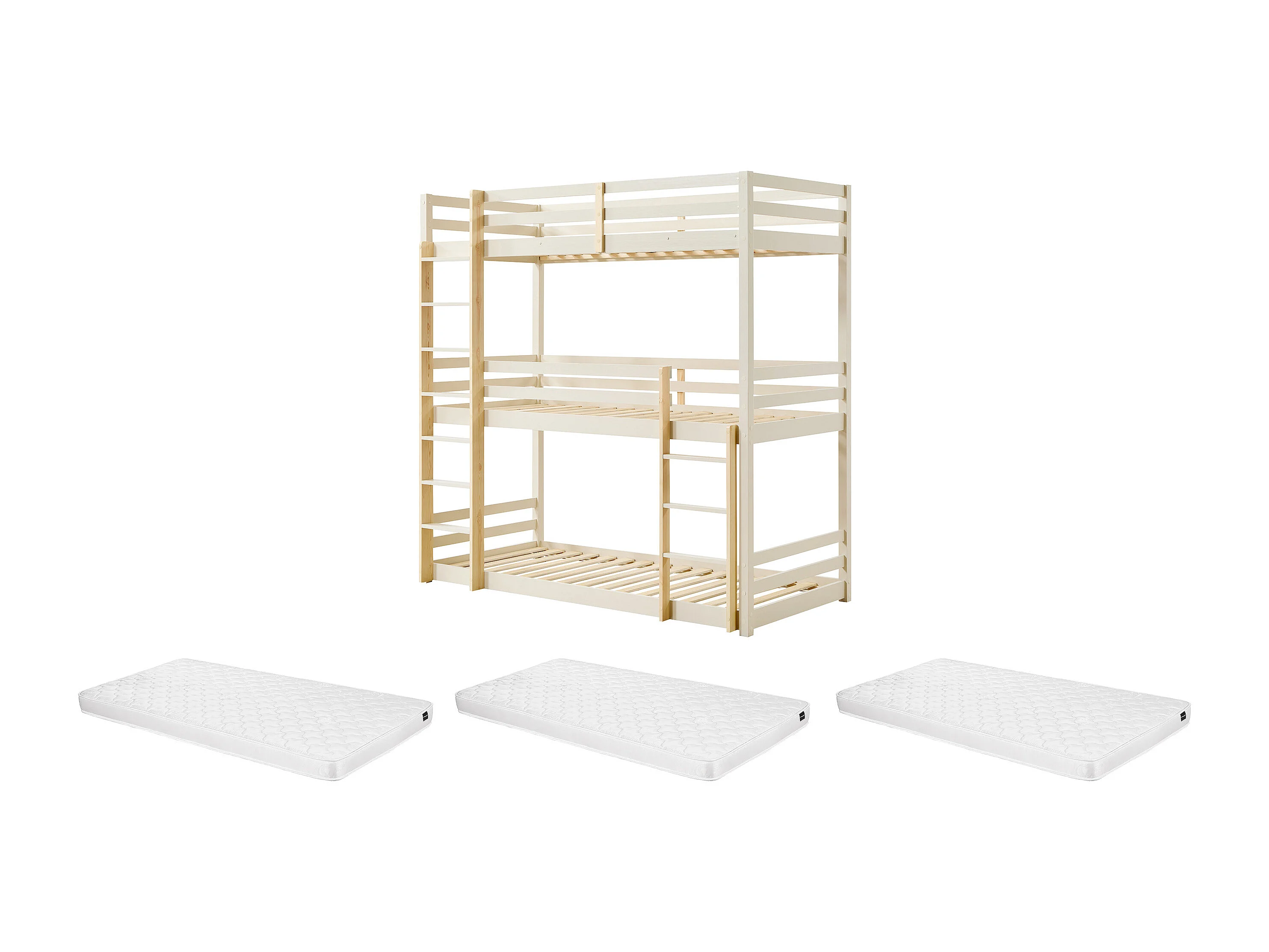 Lits superposés triple - 3 x 90 x 200 cm - Pin – Beige et naturel + matelas - VAGAR