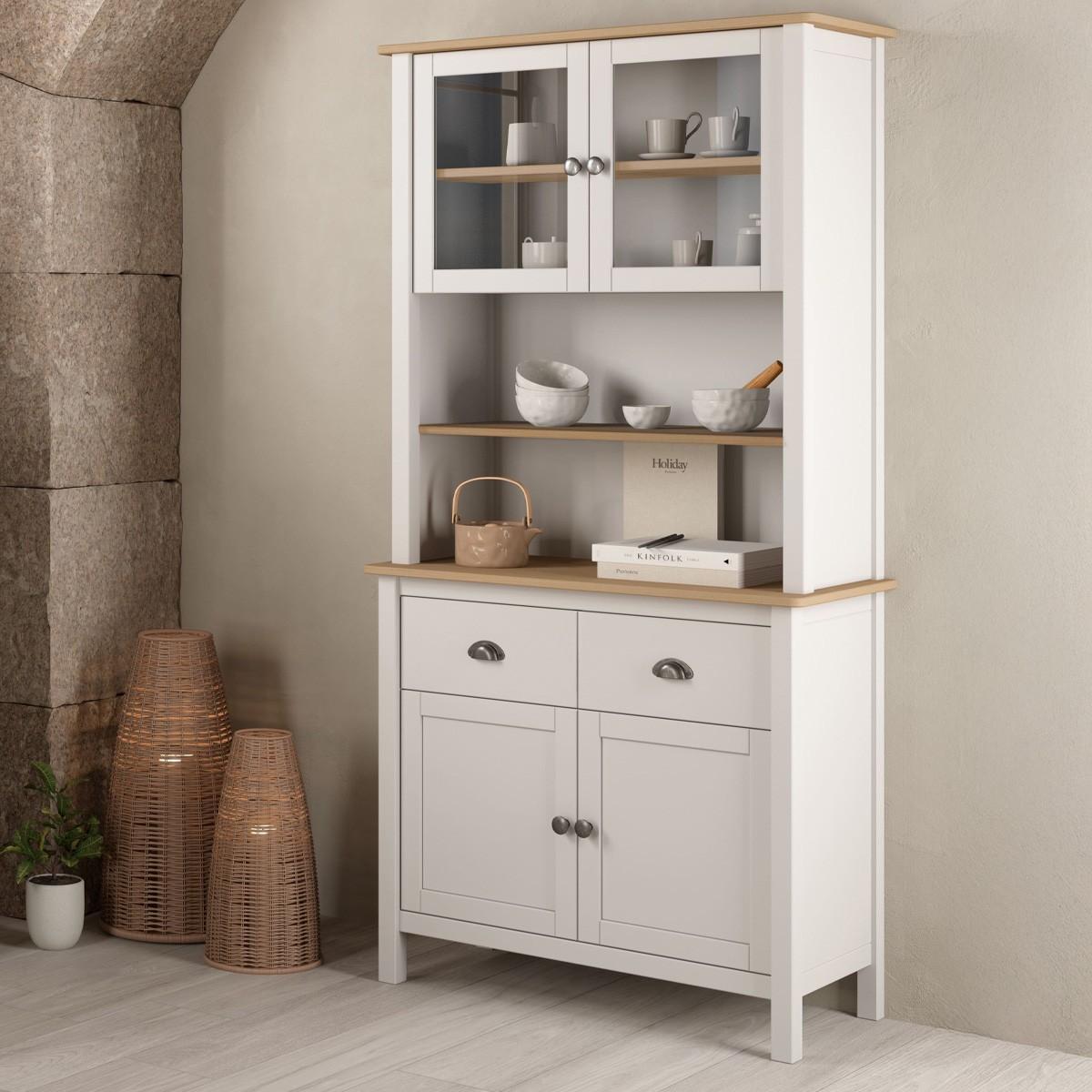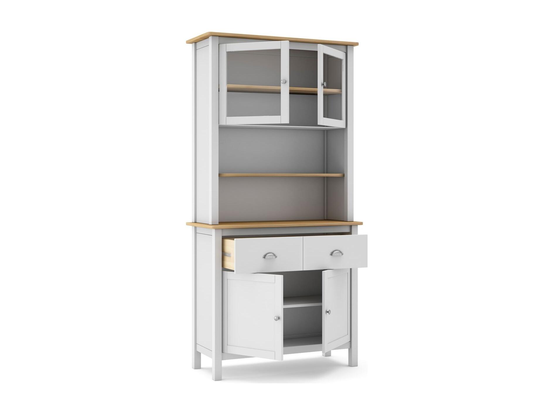 Vaisselier 4 portes 2 tiroirs en bois massif blanc 90 cm - Macha