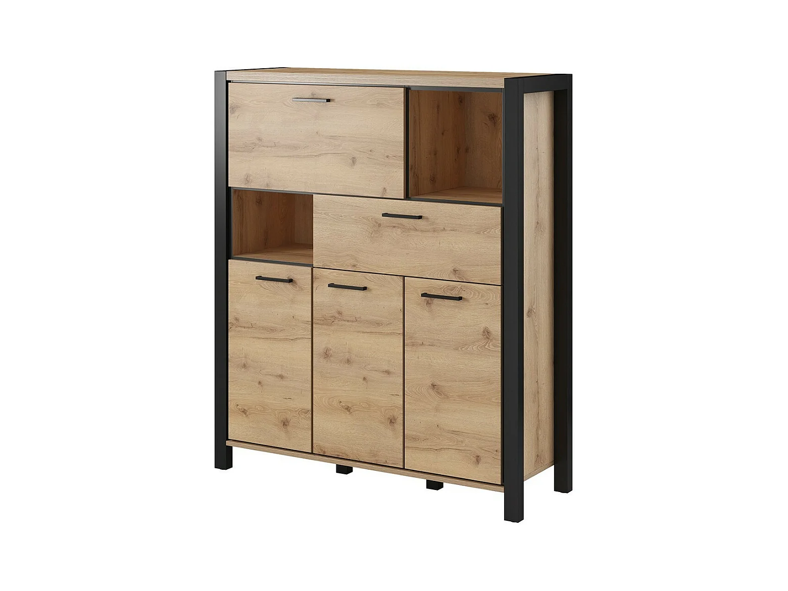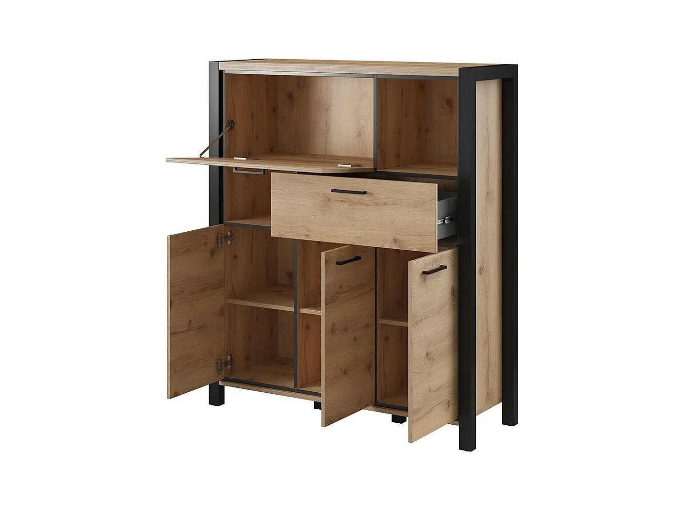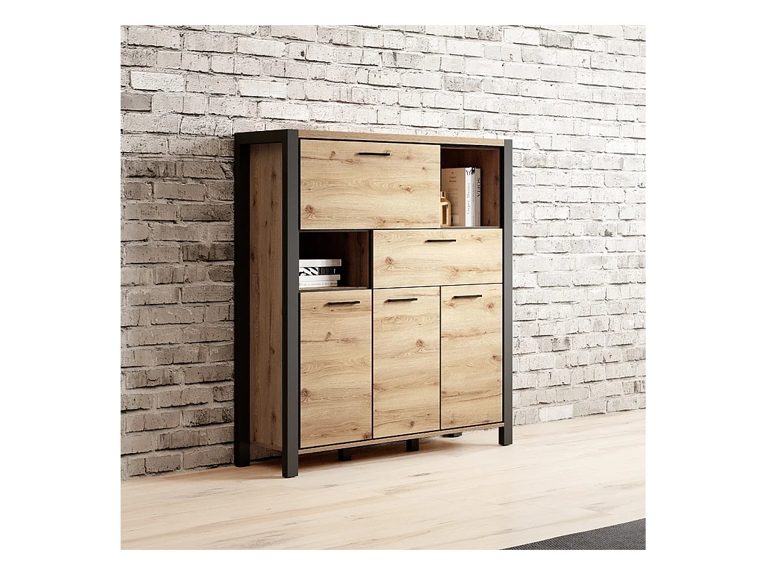 Vaisselier 4 portes et 1 tiroir collection TIVORA. Couleur chêne et noir. LED incluses