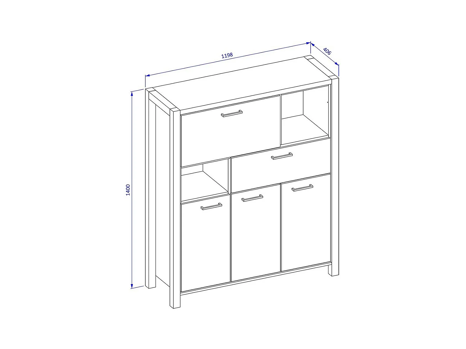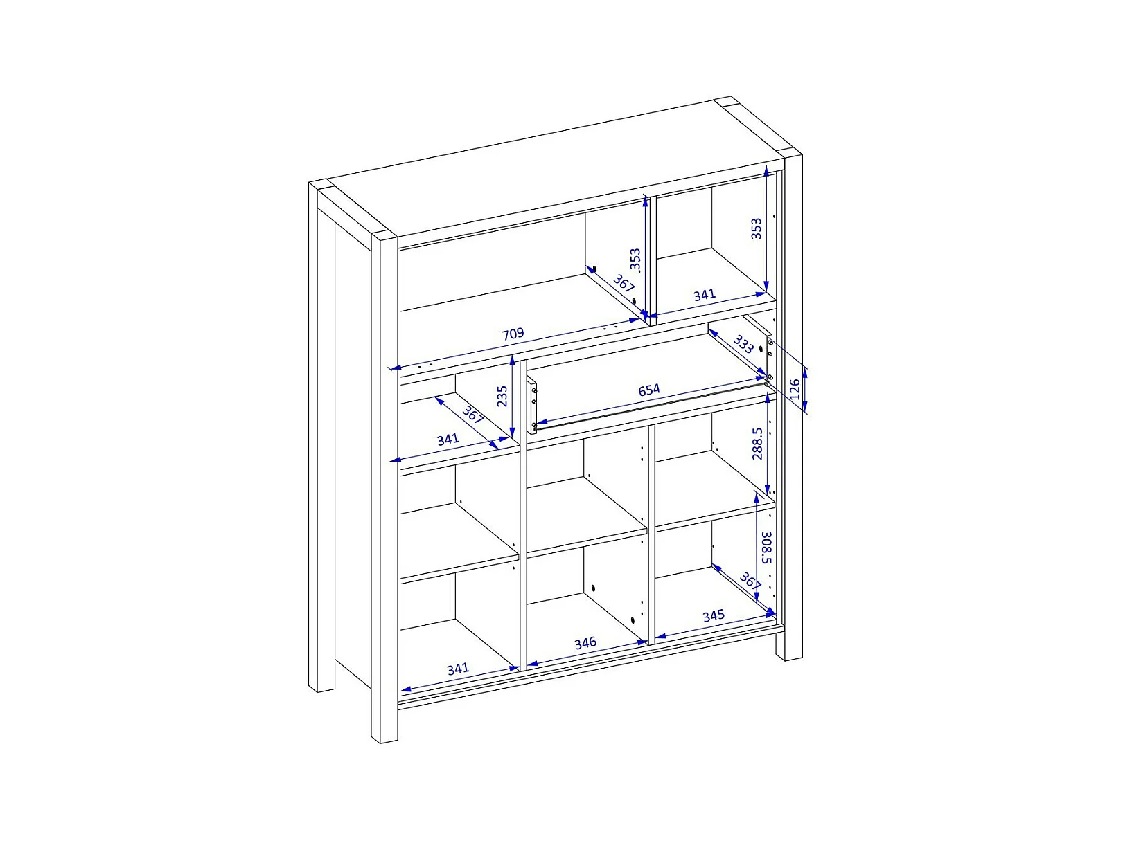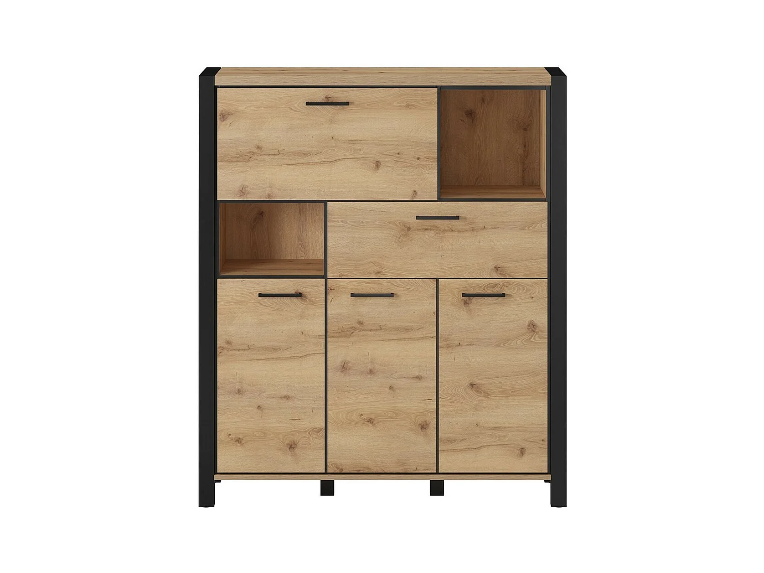 Vaisselier 4 portes et 1 tiroir collection TIVORA. Couleur chêne et noir. LED incluses