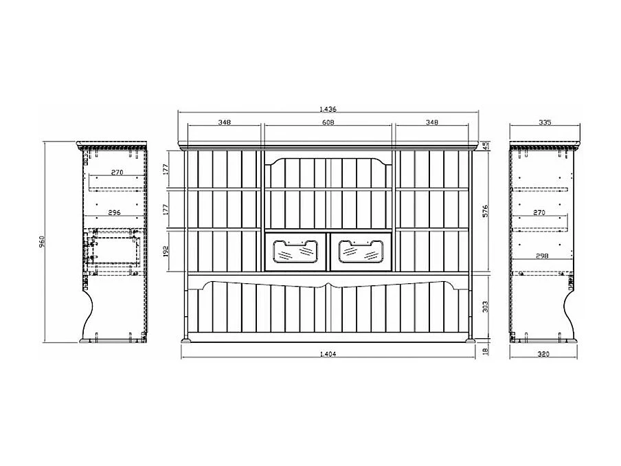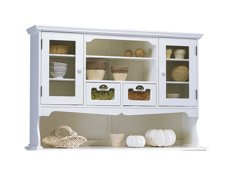 Vaisselier Blanc 5 Portes 5 Tiroirs 11 Niches Style Anglais L 146.6 H 186 P 42.5 cm