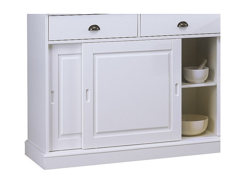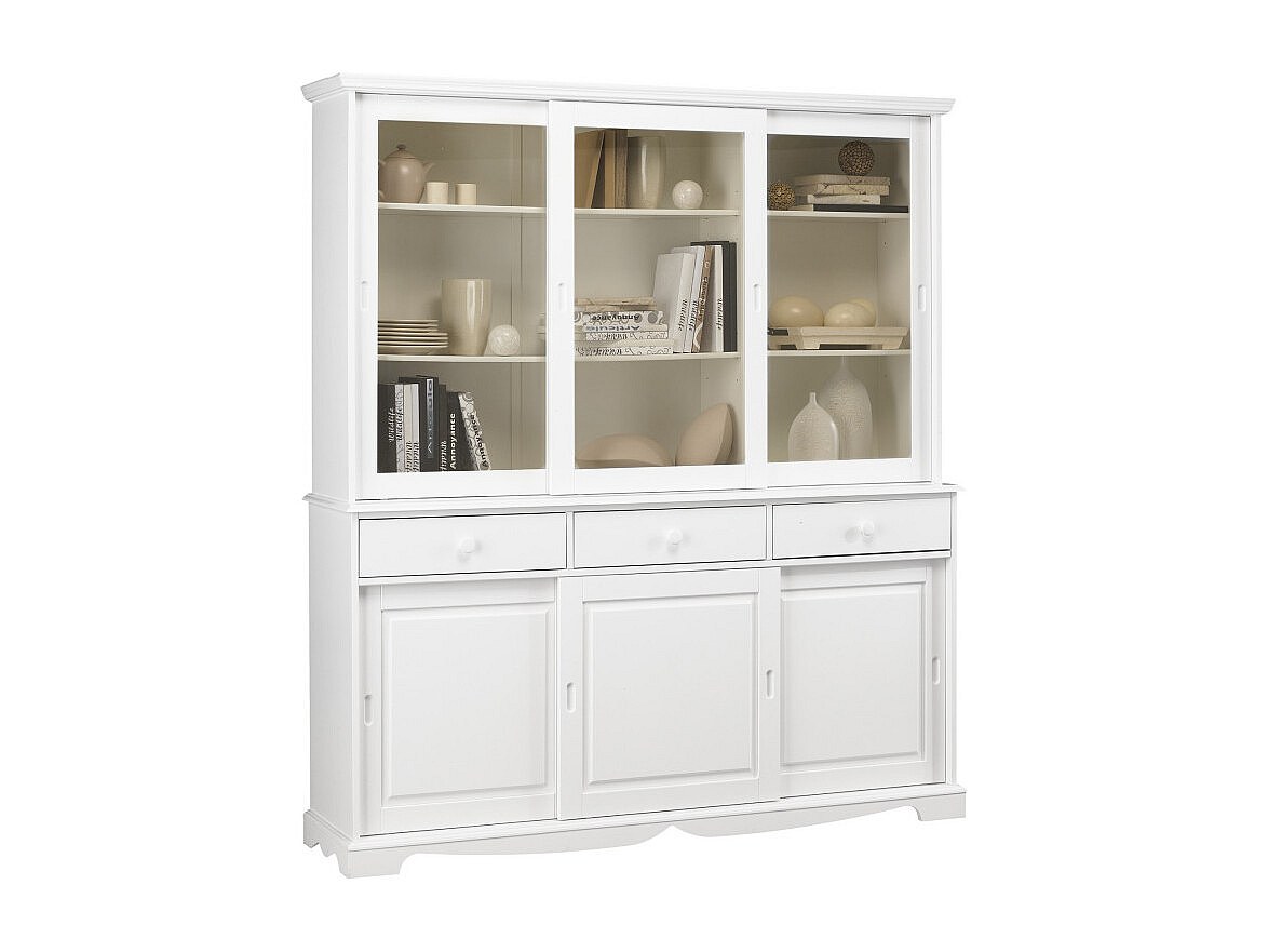 Vaisselier Blanc 6 Portes Coulissantes 3 Tiroirs 10 Niches L 178.6 H 199 P 42.3 cm