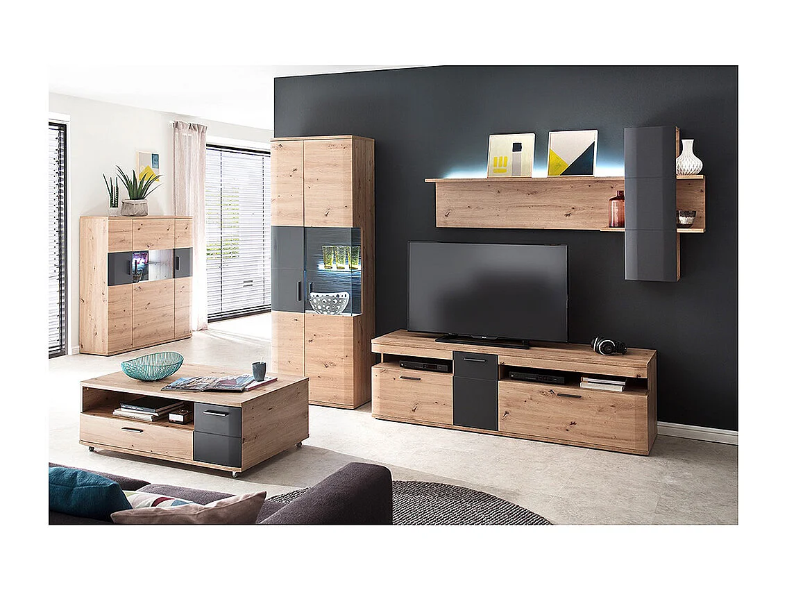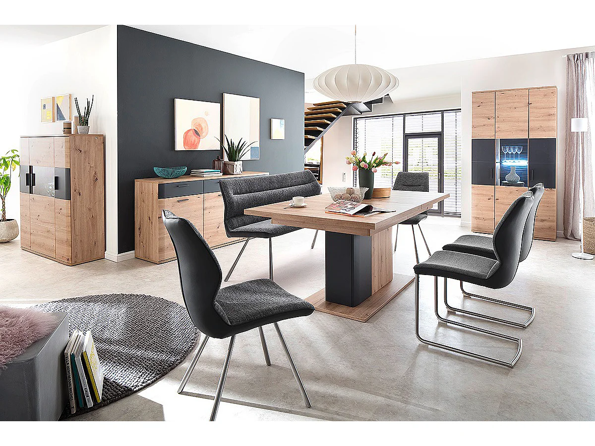 Vaisselier coloris chêne massif / graphite - Longueur 120 x Hauteur 134 x Profondeur 37 cm
