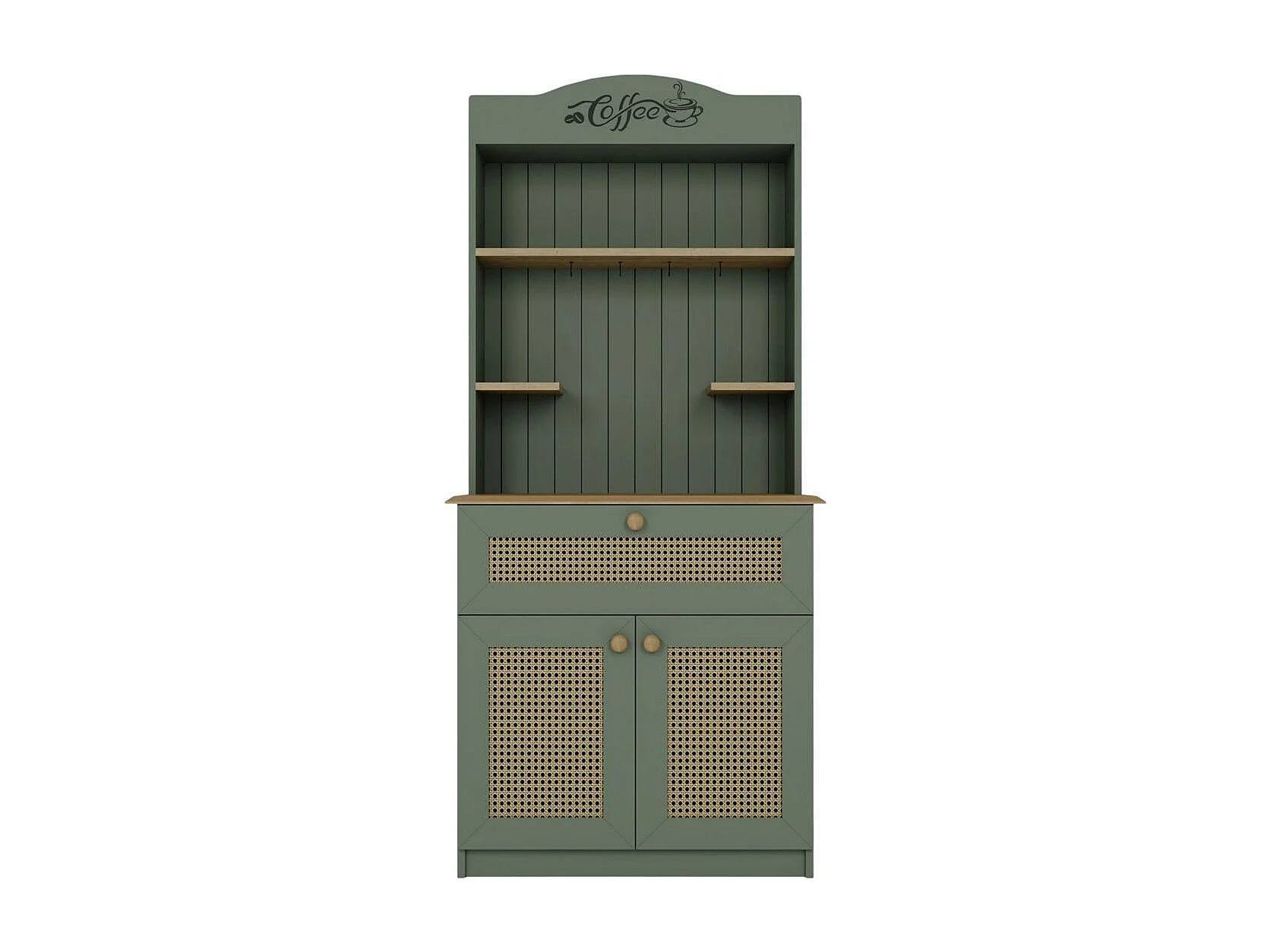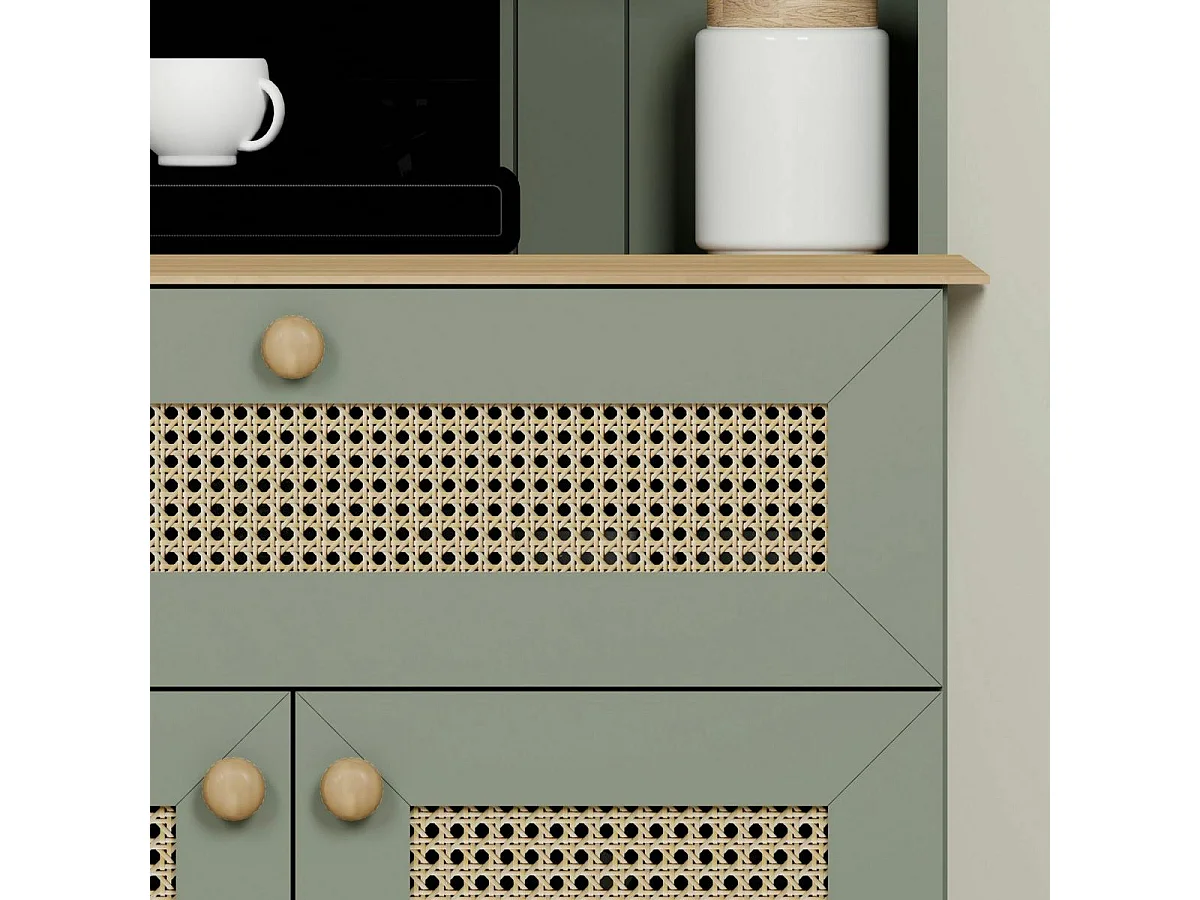 Vaisselier de cuisine vert sauge, cannage & niche café VAREN