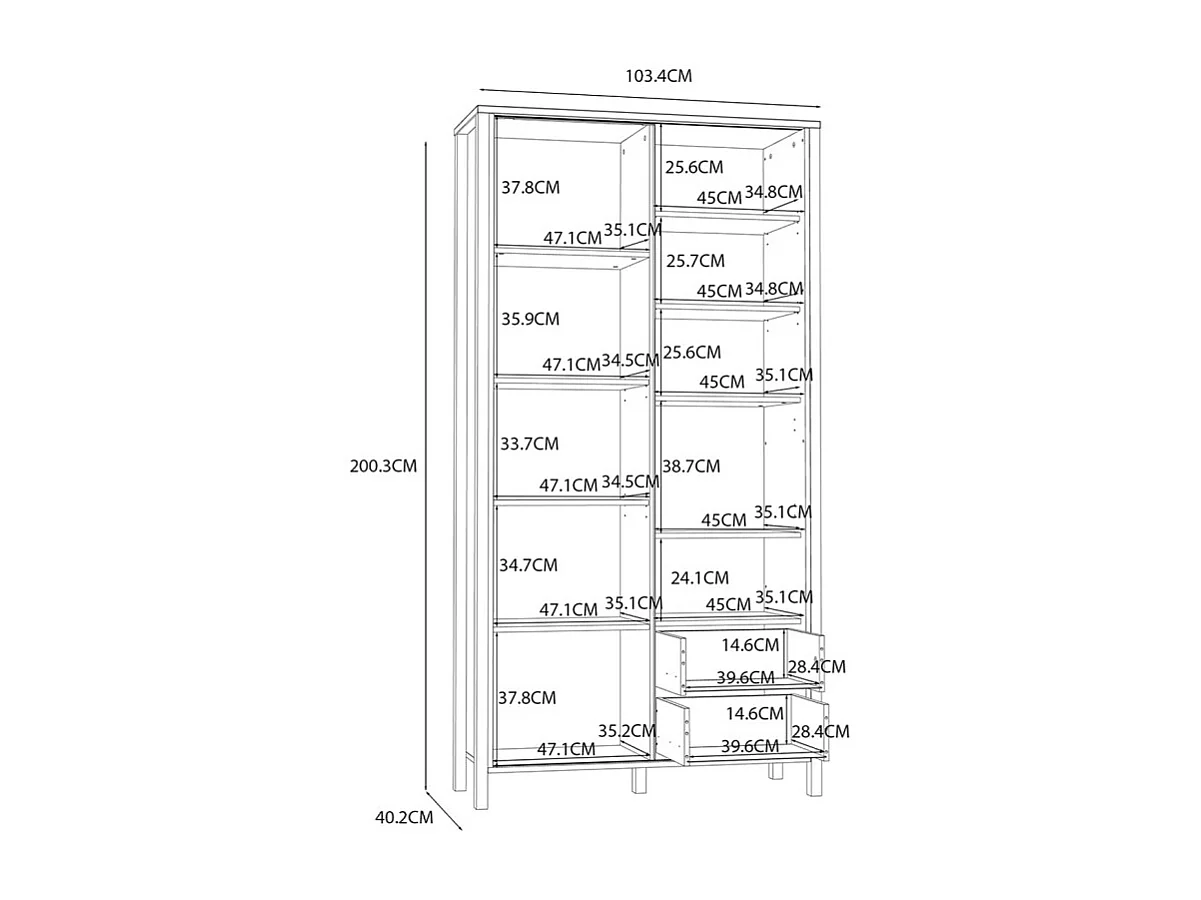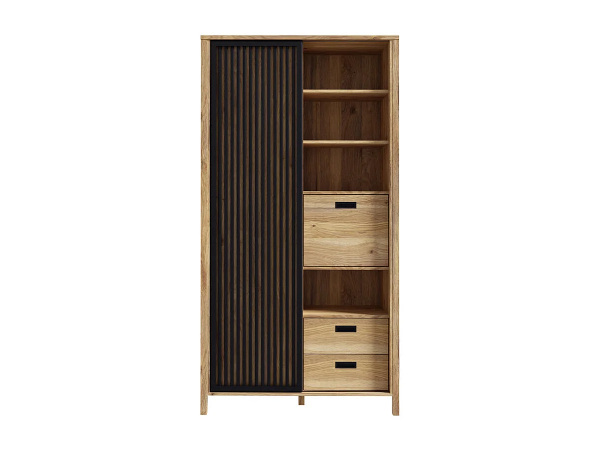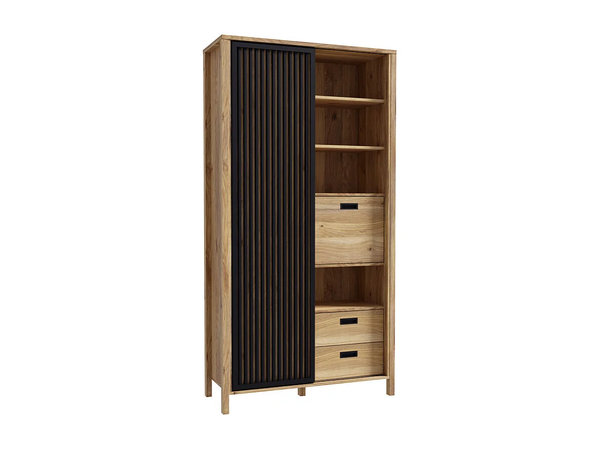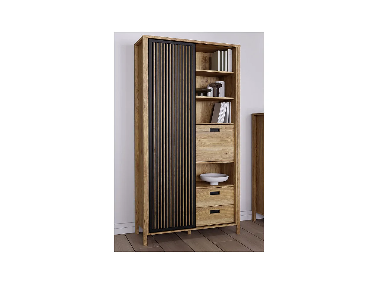 Vaisselier décor chêne avec porte coulissante ajourée noire - SELENA