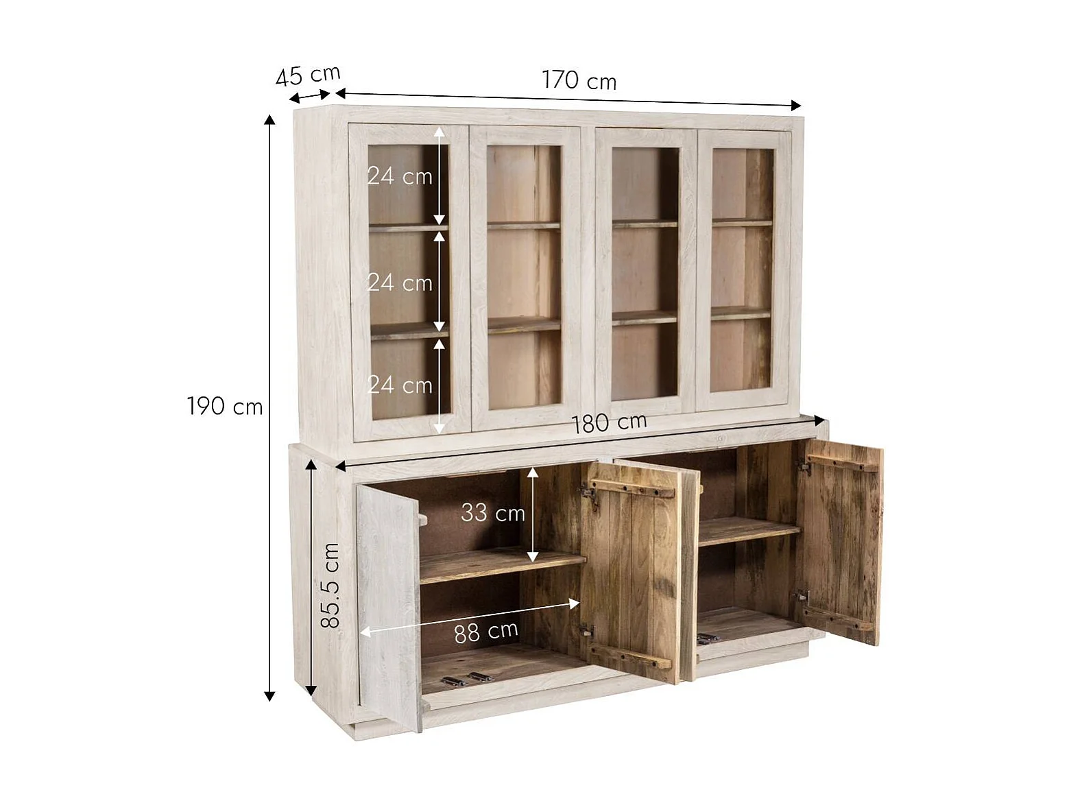 Vaisselier en bois de manguier blanchi Alison