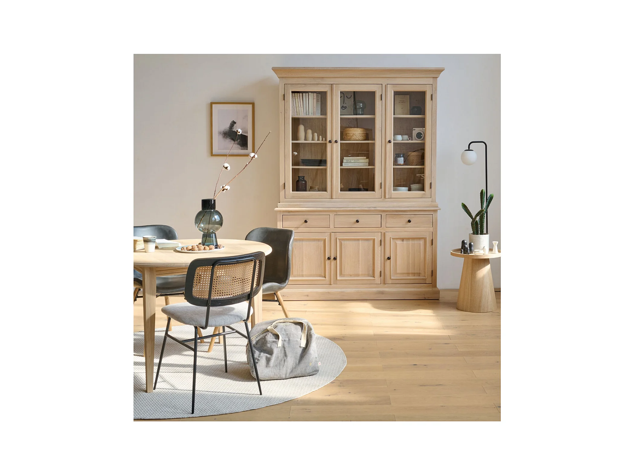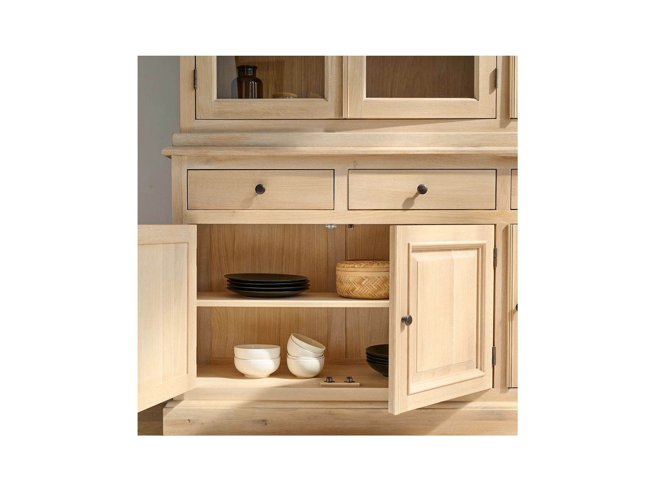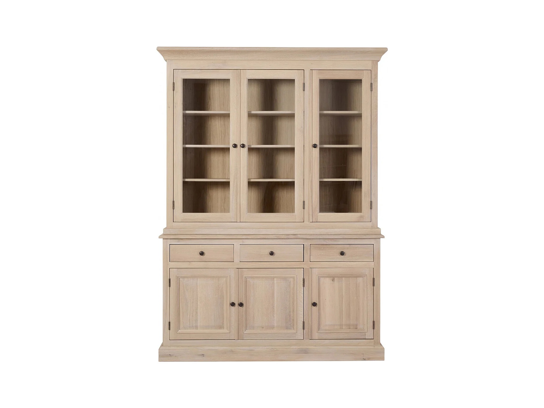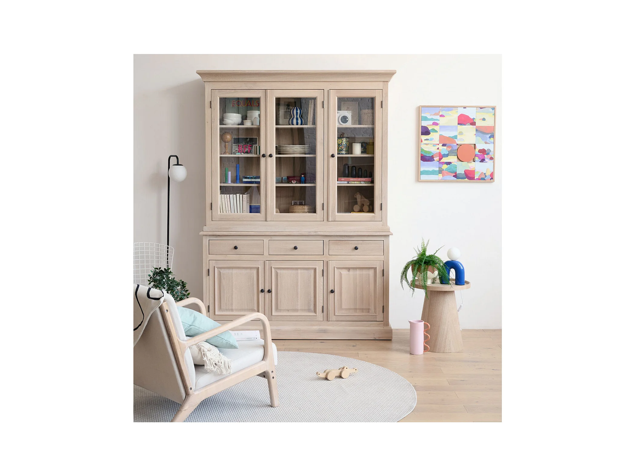 Vaisselier en chêne blanchi 3 portes vitrées 3 tiroirs 3 portes bois - VICTORIA