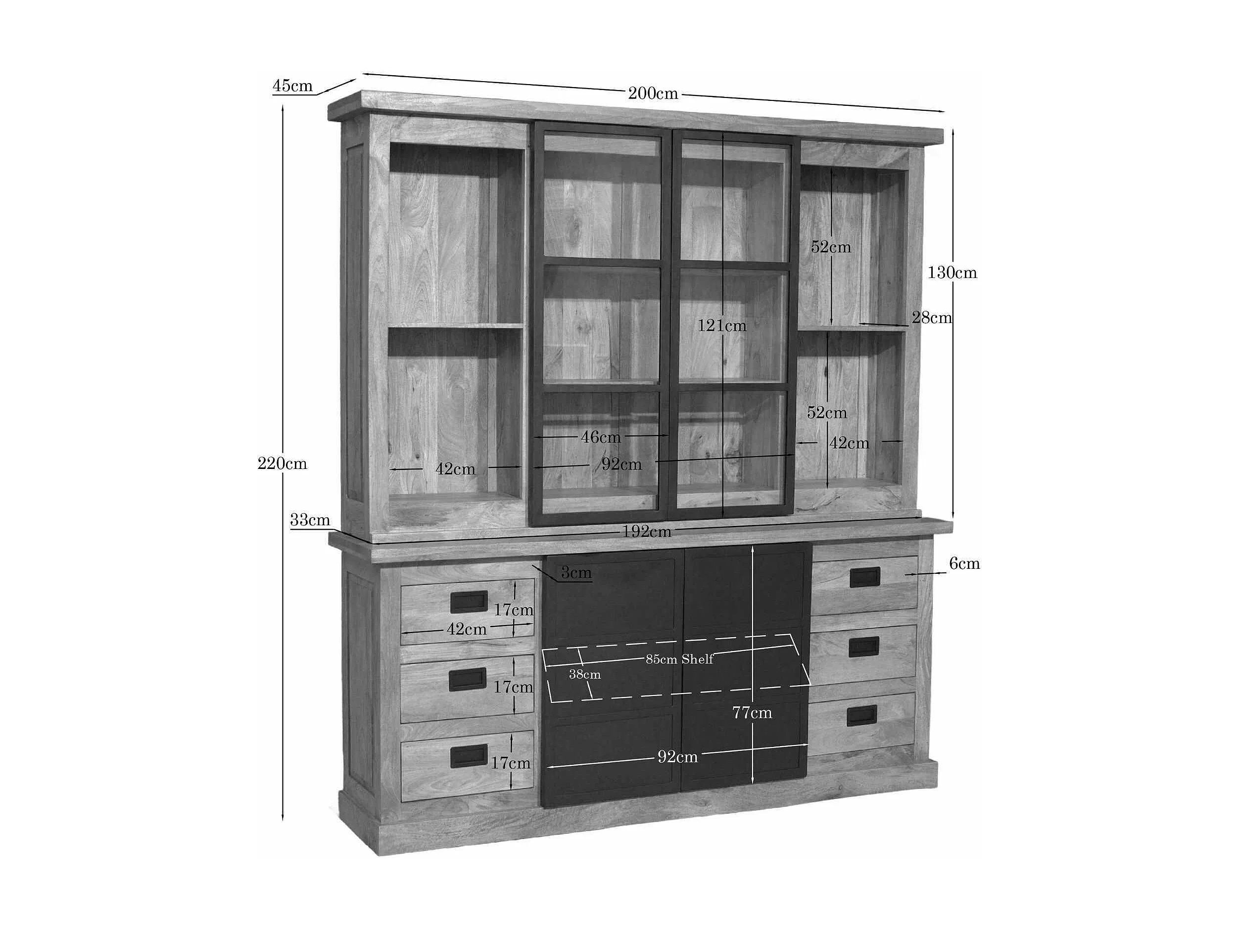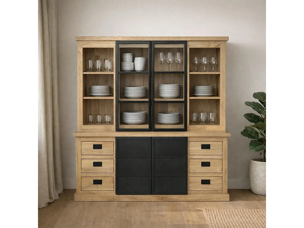 Vaisselier industriel moderne à portes coulissantes 200 cm CEYLAN
