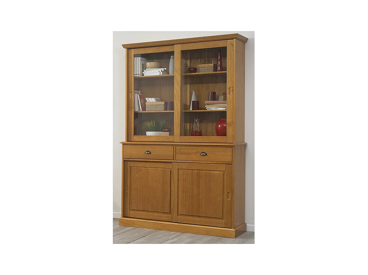 Vaisselier Pin Miel 4 Portes Coulissantes 2 Tiroirs L 121 H 198.8 P 42.3 cm