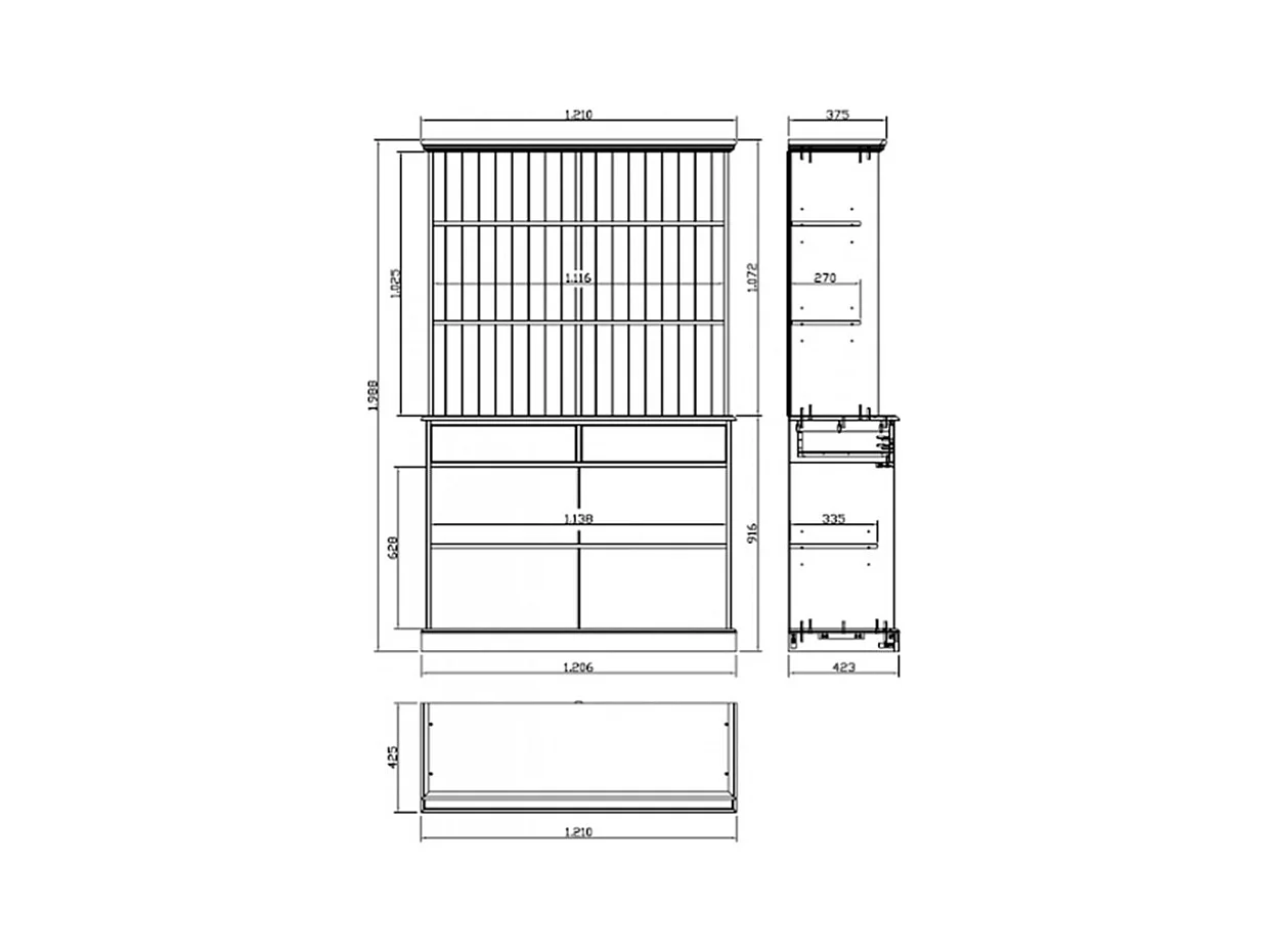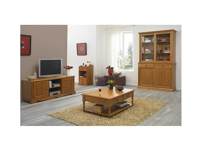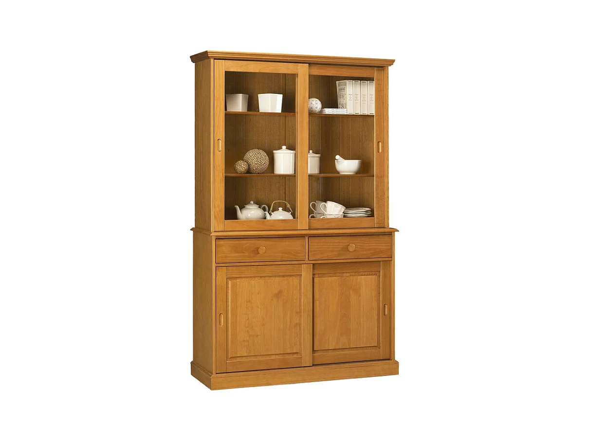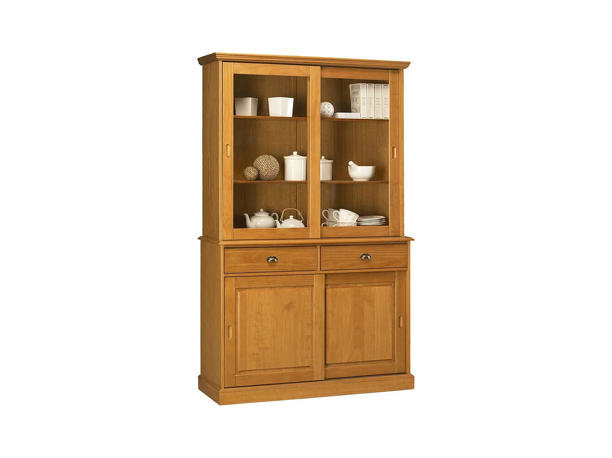 Vaisselier Pin Miel 4 Portes Coulissantes 2 Tiroirs L 121 H 198.8 P 42.3 cm