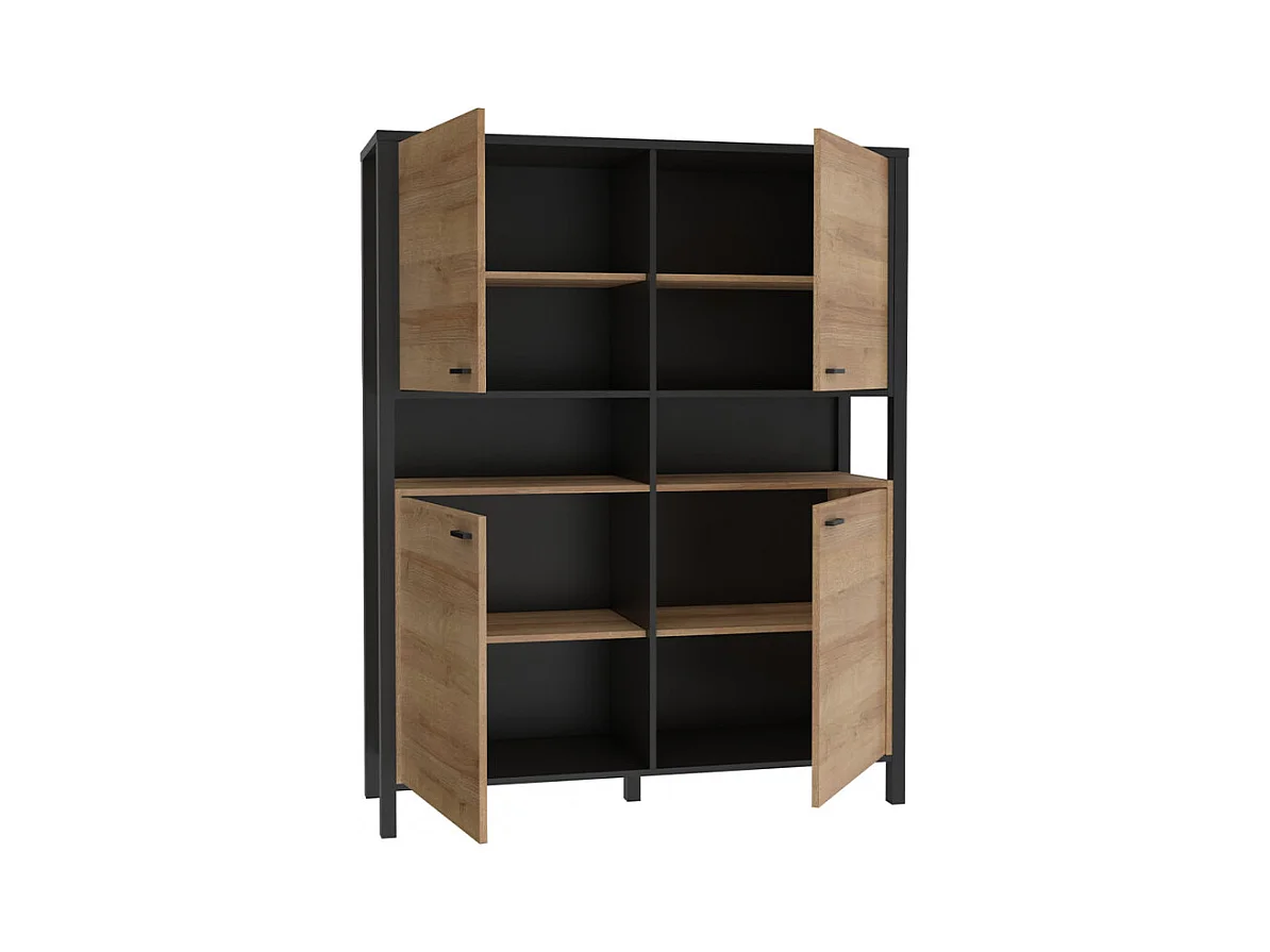 Vaisselier 121 cm 4 portes 2 niches décor bois de chêne et noir - MODE