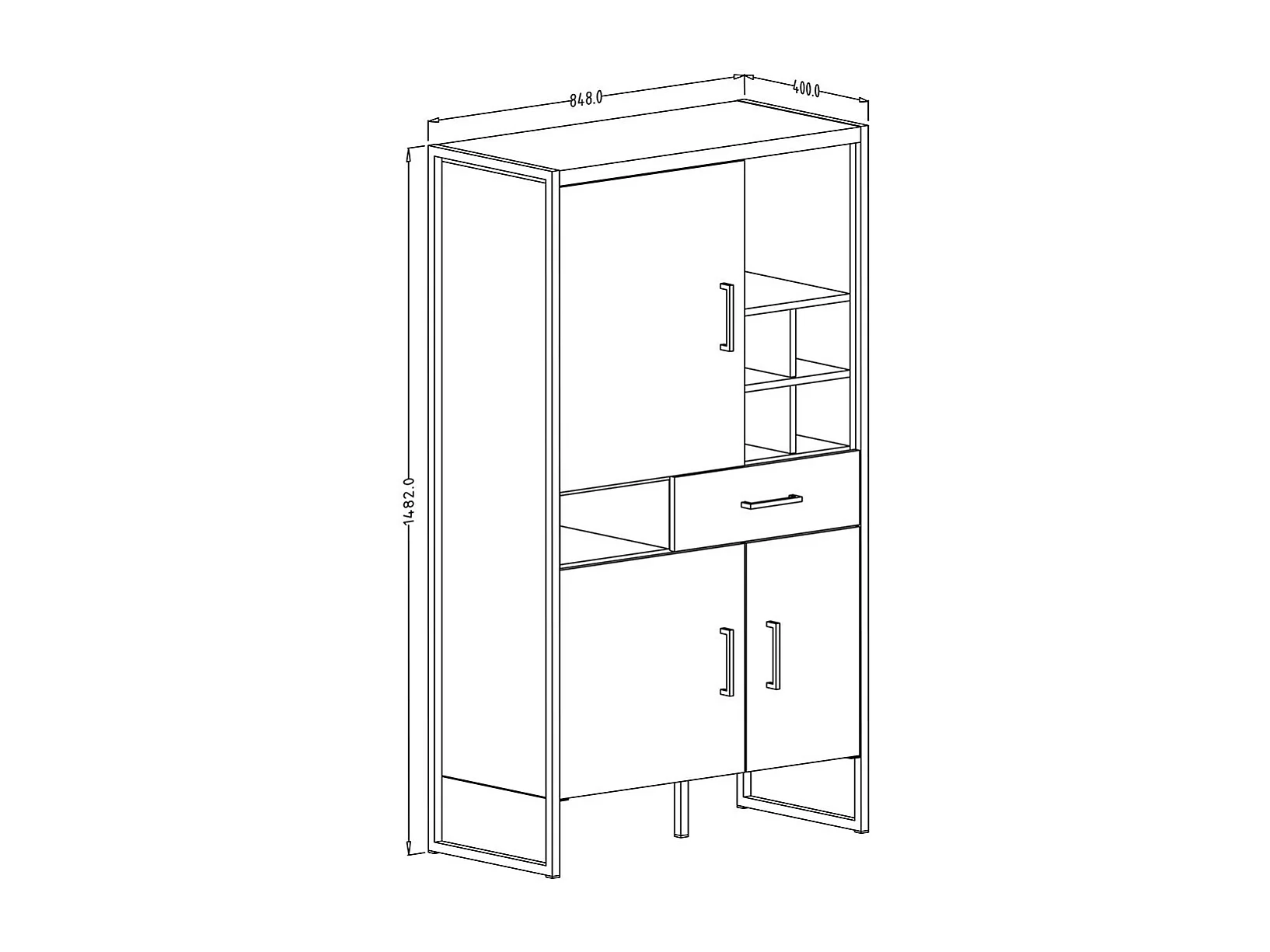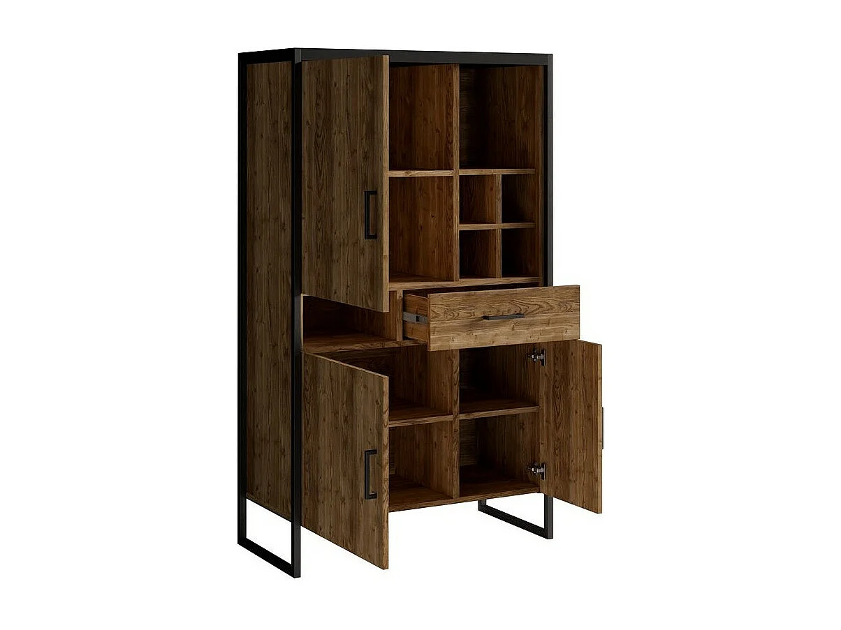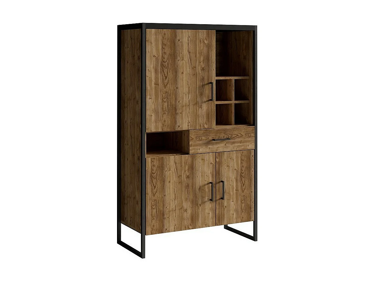 Vaisselier style industriel avec éclairage LED intégrée collection MILO. Coloris épicéa et noir.