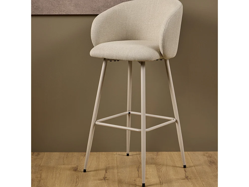 Vako - Lot de 2 tabourets de bar en tissu pieds beiges H78cm - Beige