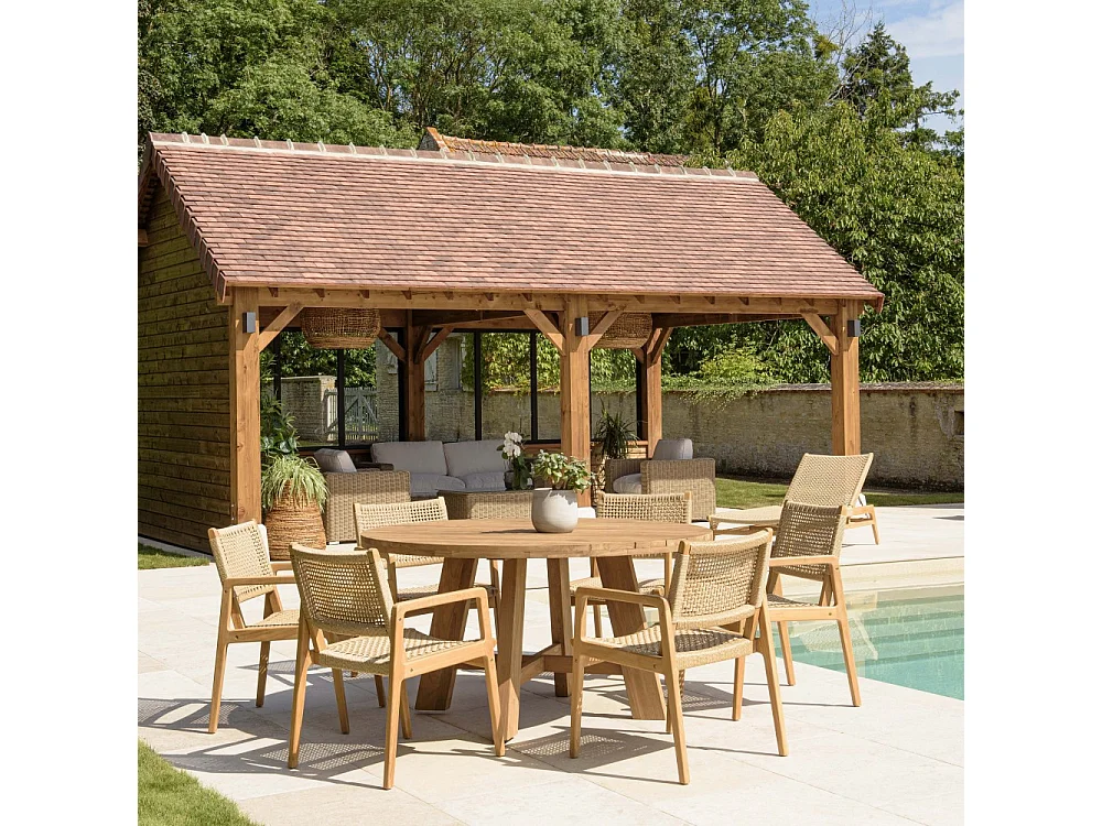 VALERIA - Ensemble de jardin en bois de teck recyclé rotin 6 pers.