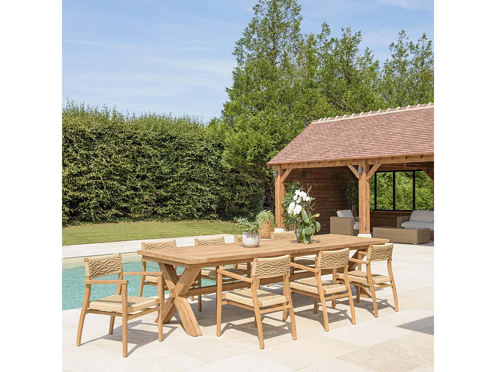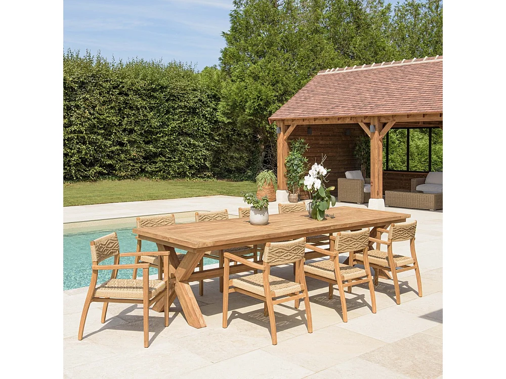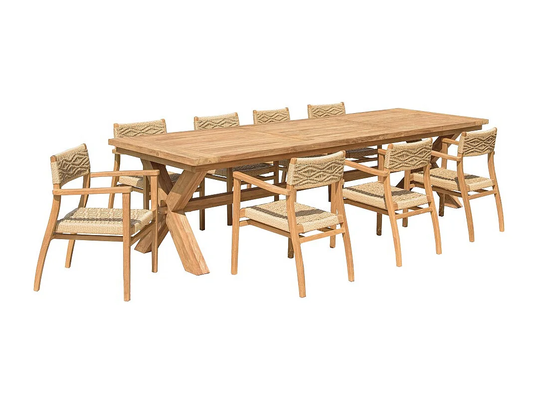 VALERIA - Ensemble de jardin en bois de teck recyclé rotin 8/10 pers.