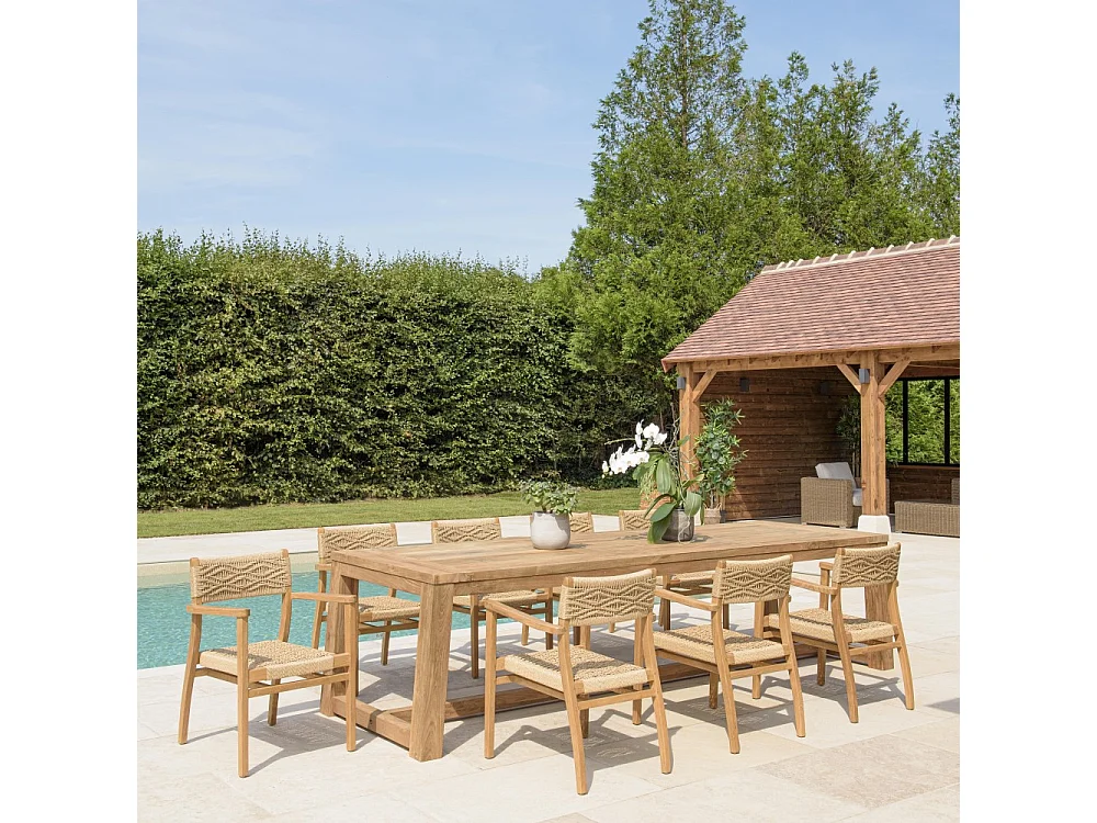 VALERIA - Ensemble de jardin en bois de teck recyclé rotin 8/10 pers.
