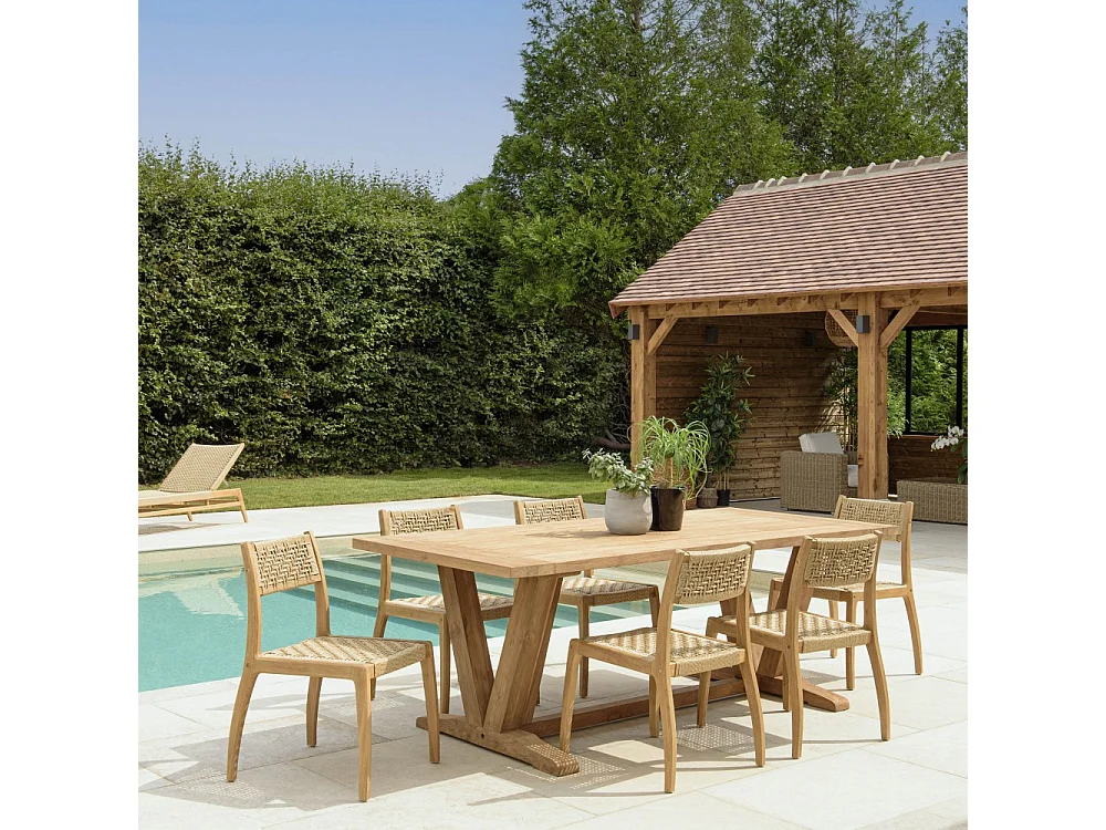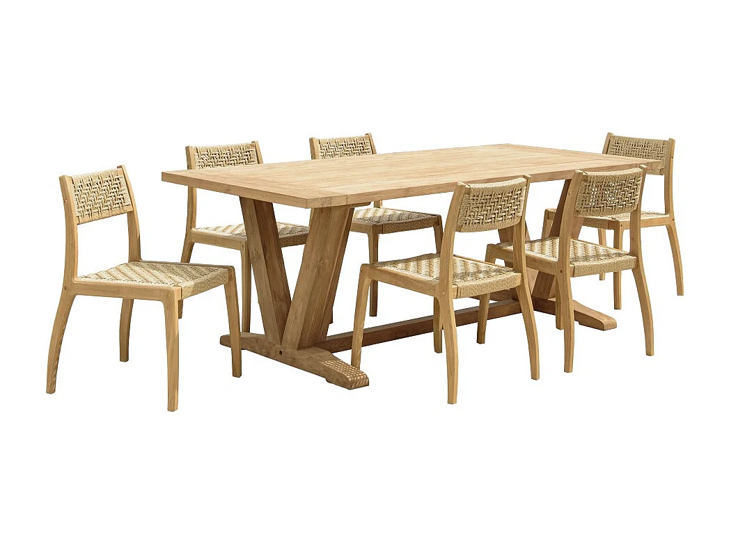 VALERIA - Ensemble de jardin bois de teck recyclé rotin 6 pers.