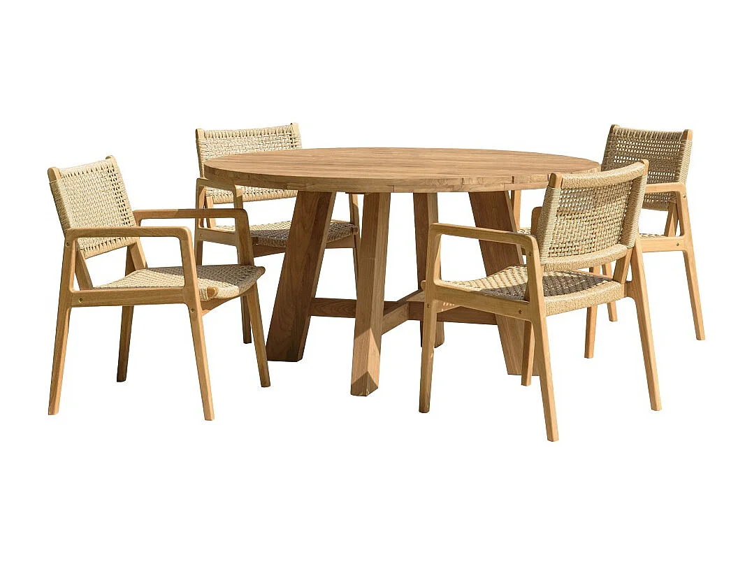 VALERIA - Ensemble de jardin en bois de teck recyclé rotin 4 pers.