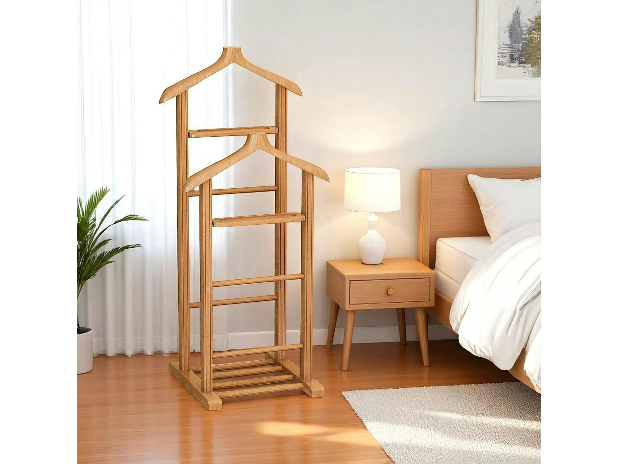 Valet de chambre double - bois clair, vide-poches SITIA