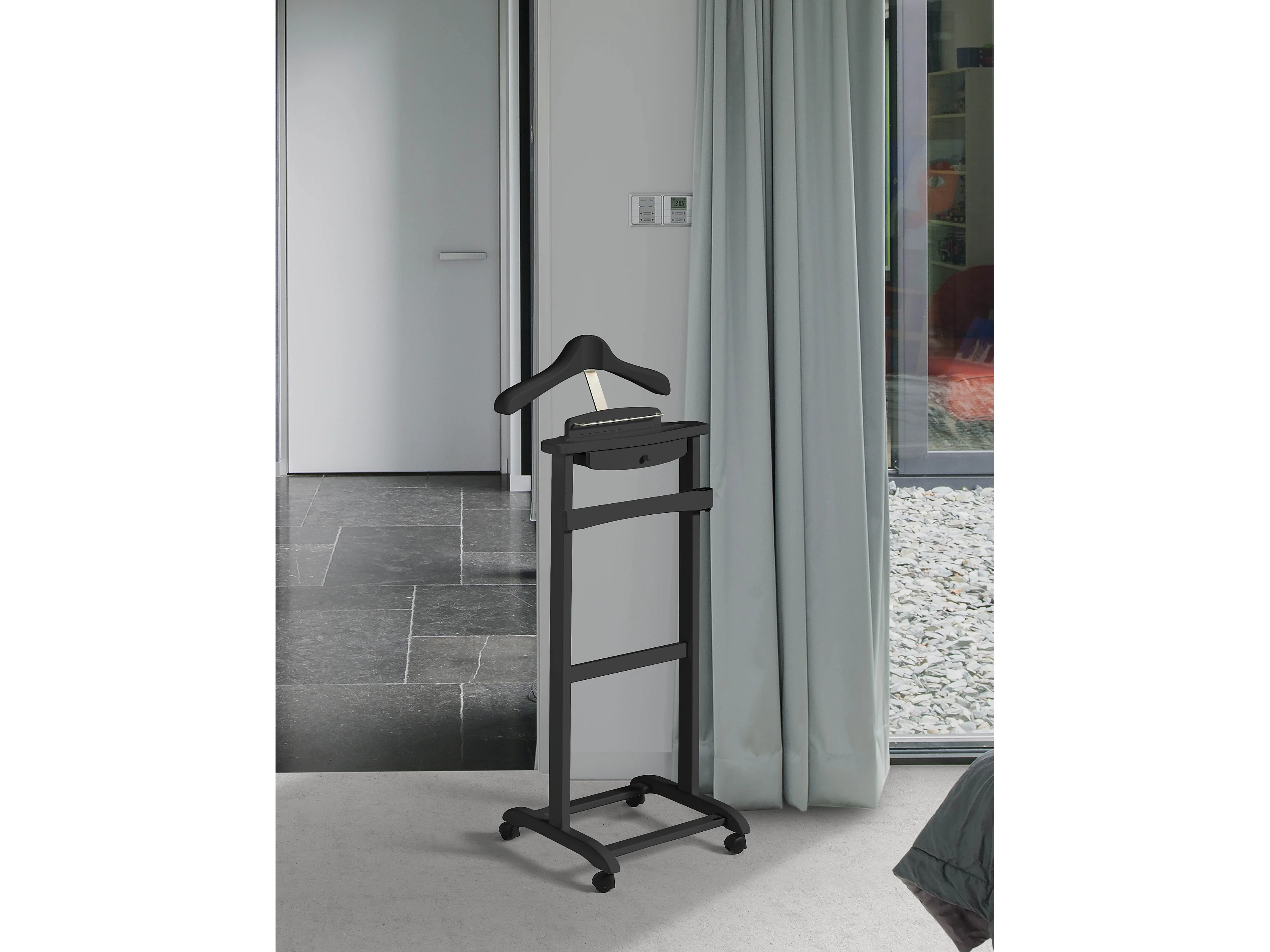 Valet de nuit à roulettes - H110cm x L47cm x P35cm - hêtre massif noir - Rennes
