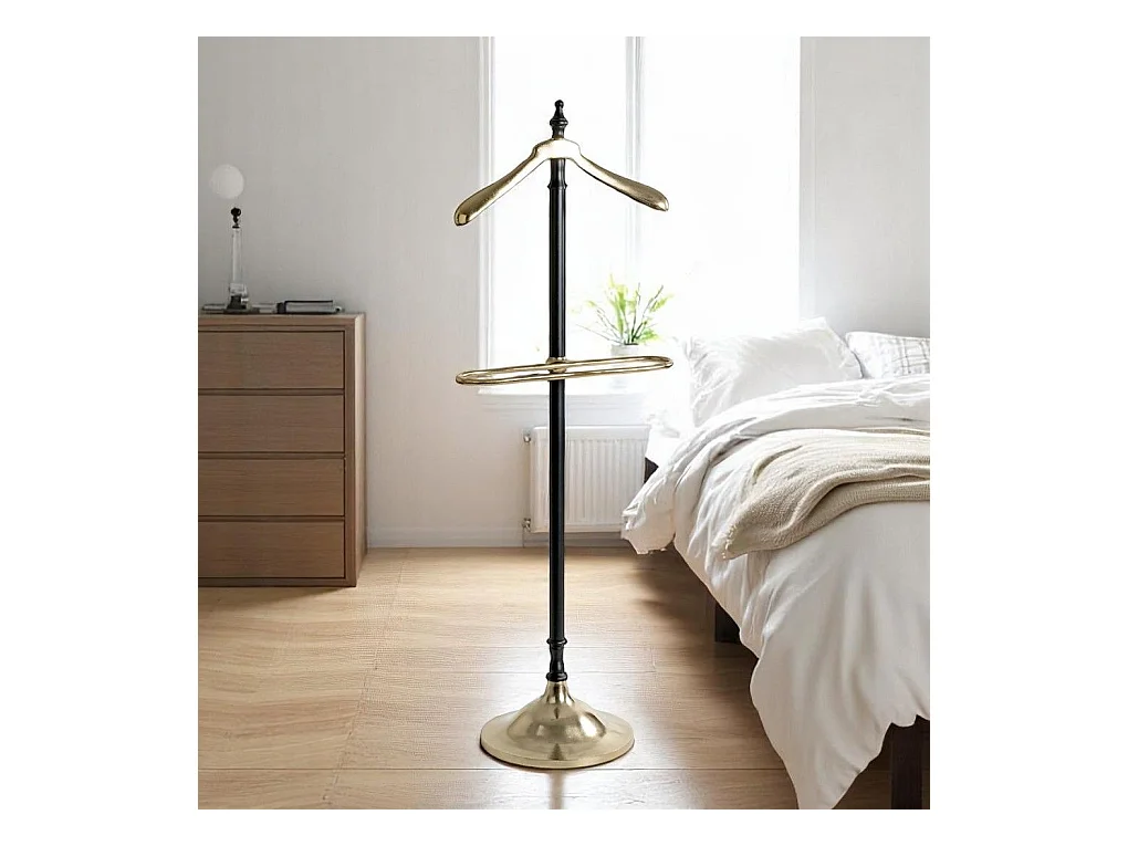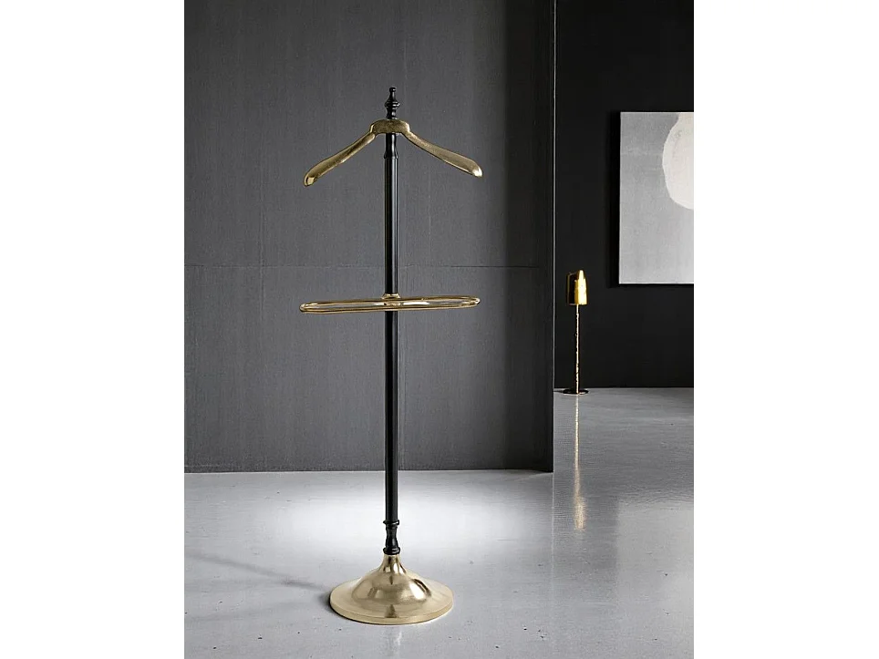 Valet de nuit avec cintre integré coloris Noir/Or - Longueur 45 x Hauteur 130 x Profondeur 32 cm