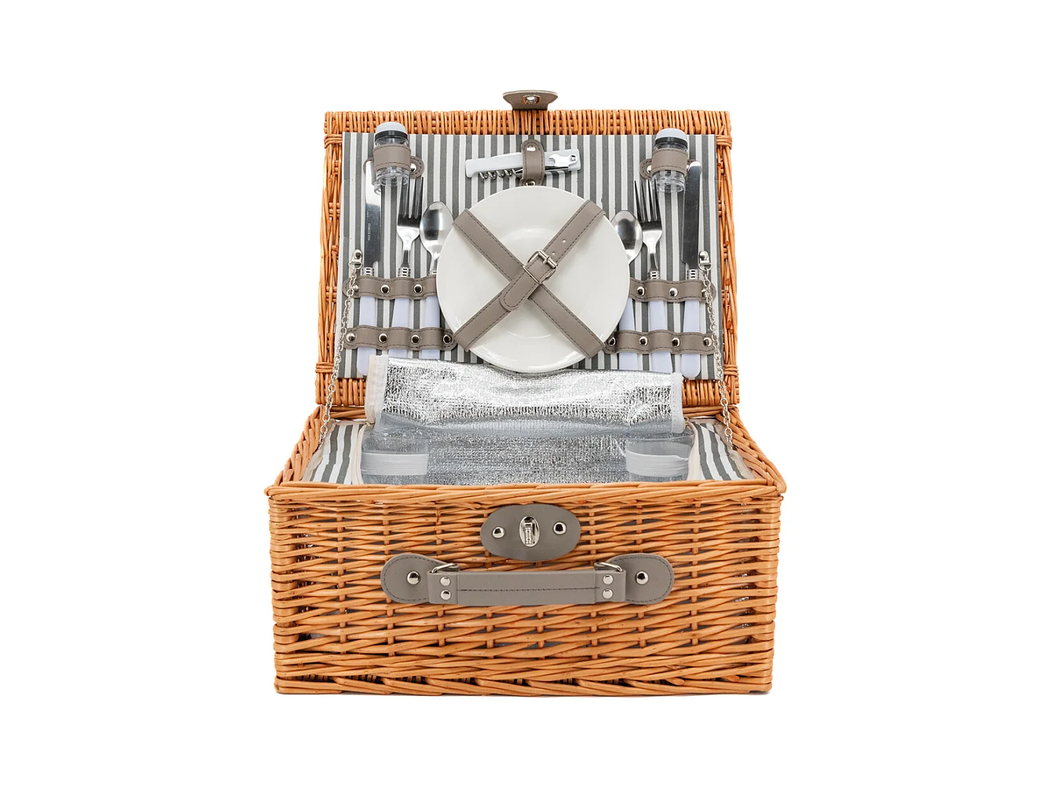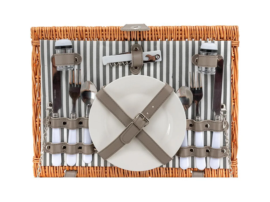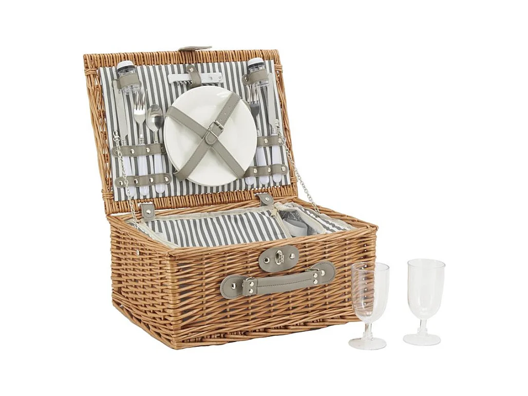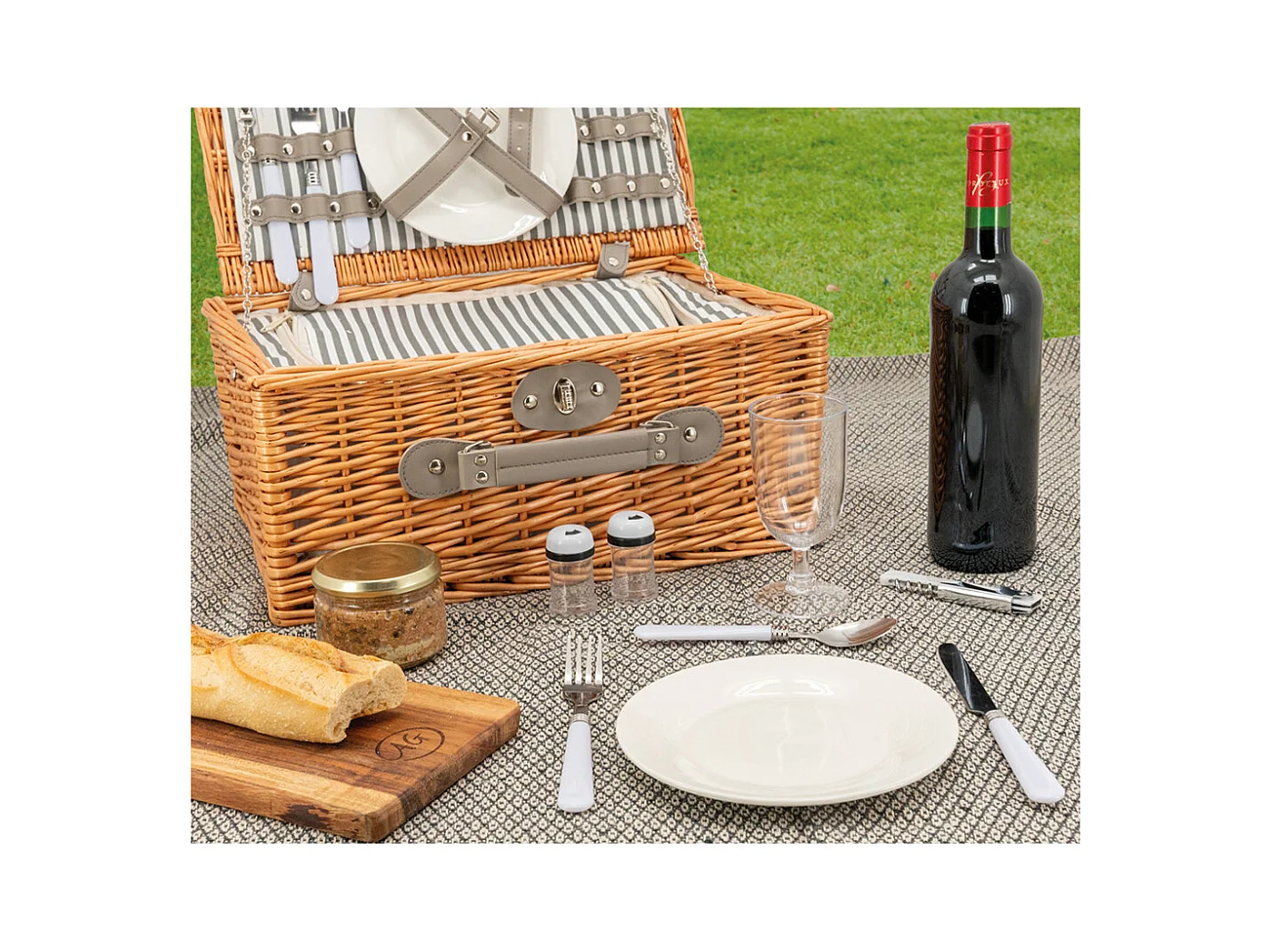 Panier pique-nique rond en osier clair 2 couvert Cerise