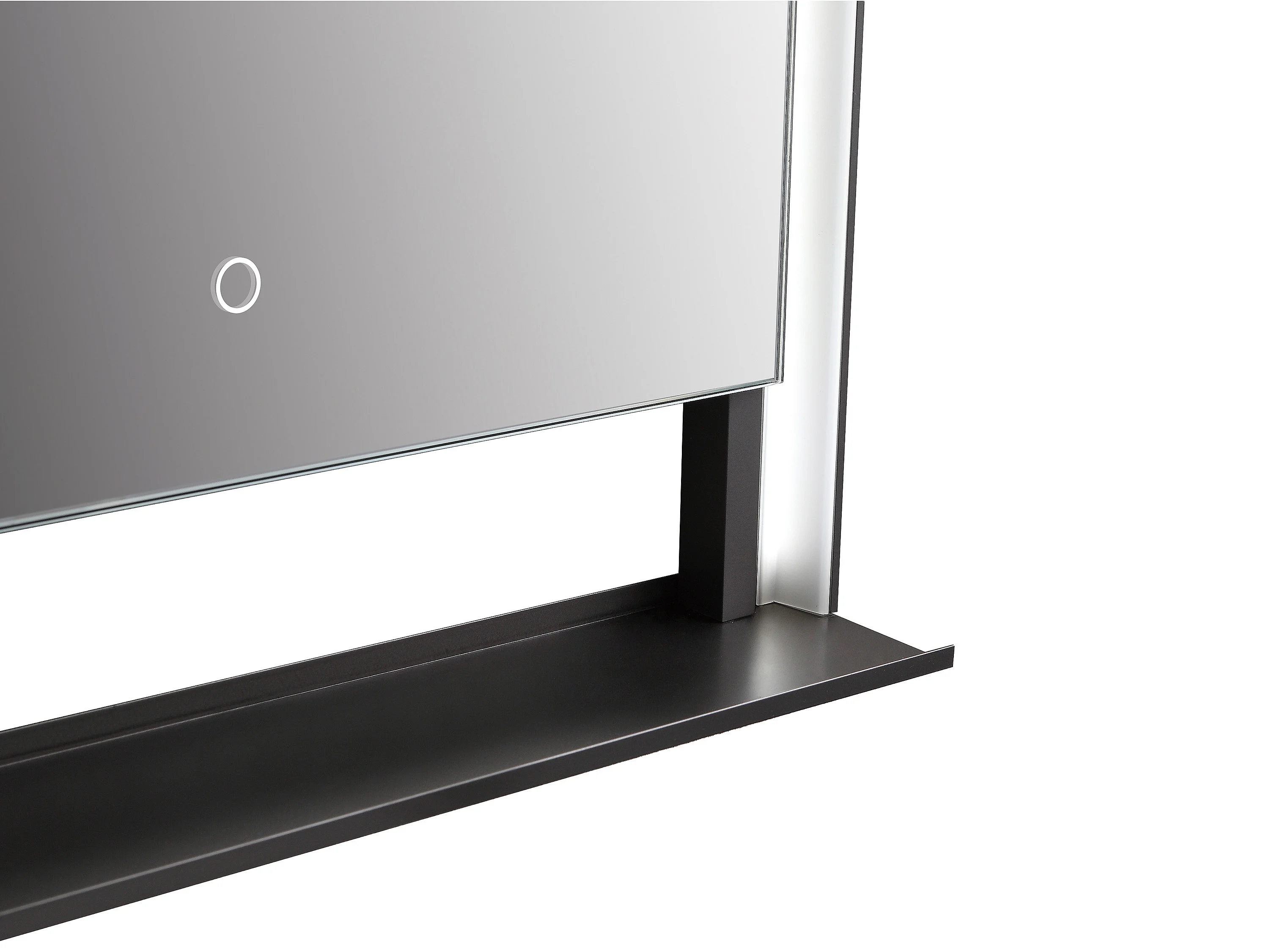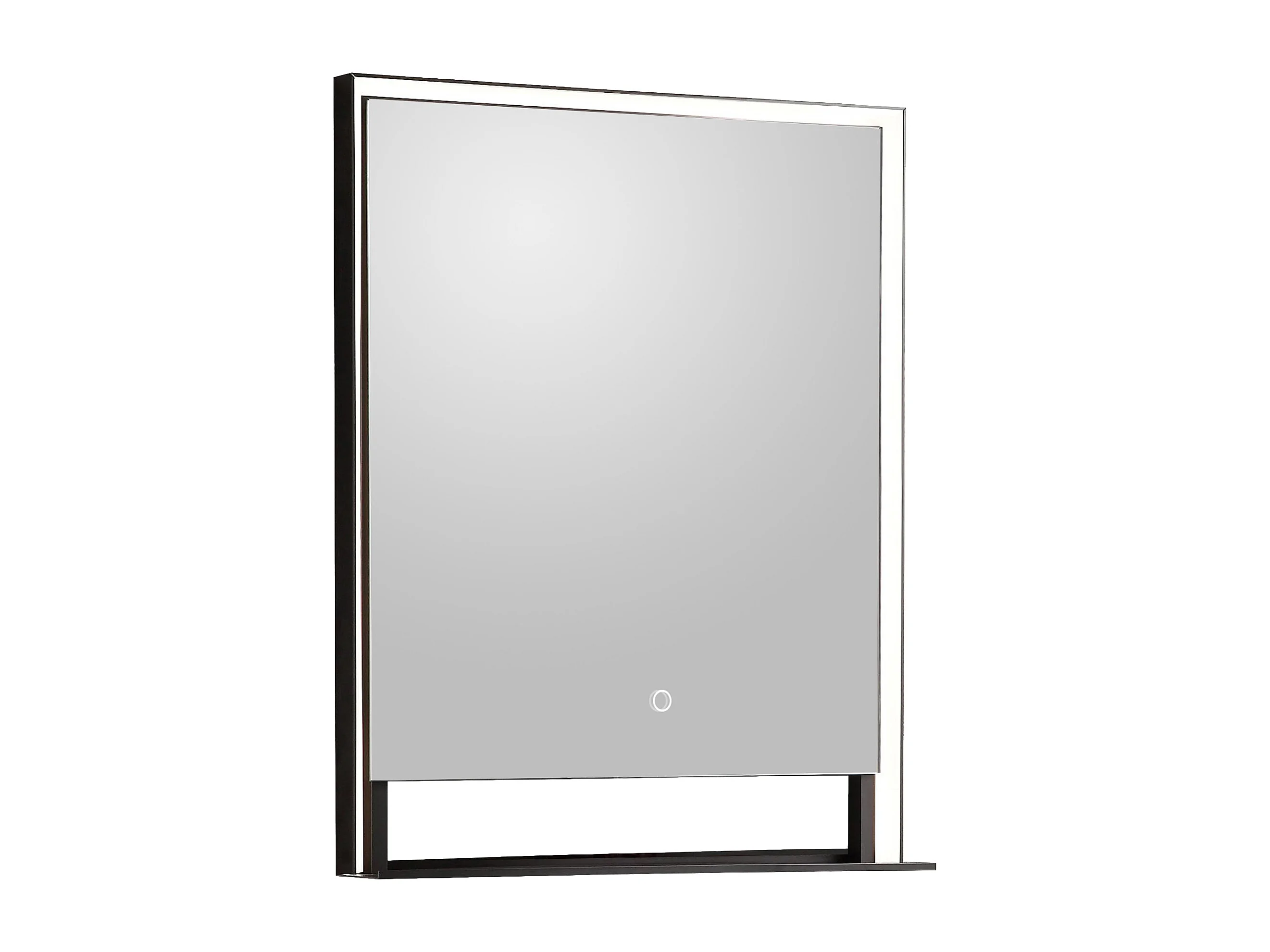 Miroir de salle de bain lumineux rectangulaire anti-buée avec étagère intégrée - Contour noir mat - 60 x 80 cm - VALONERA