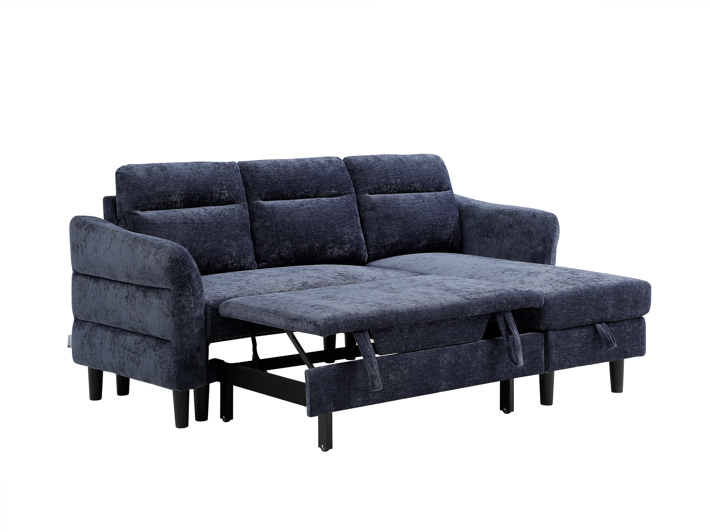 Canapé d'angle convertible et réversible en tissu texturé bleu nuit VANERSI