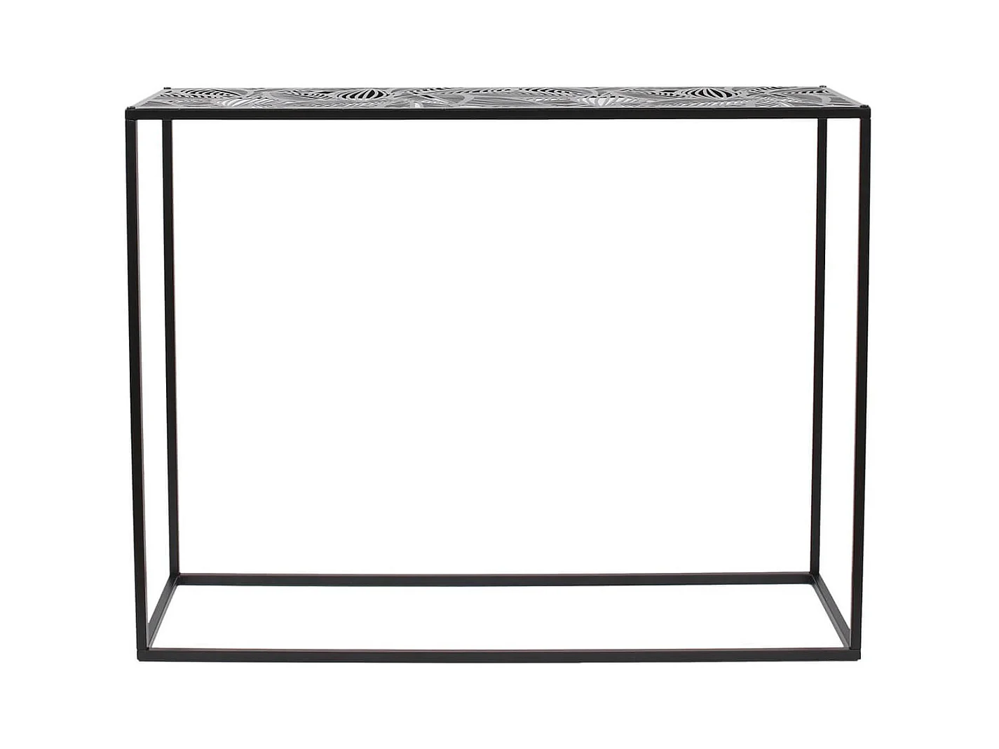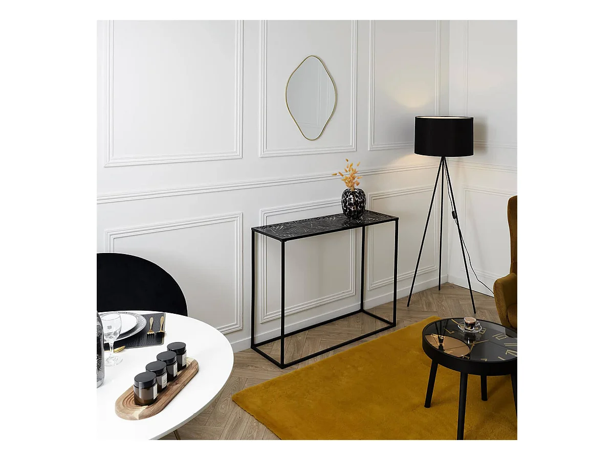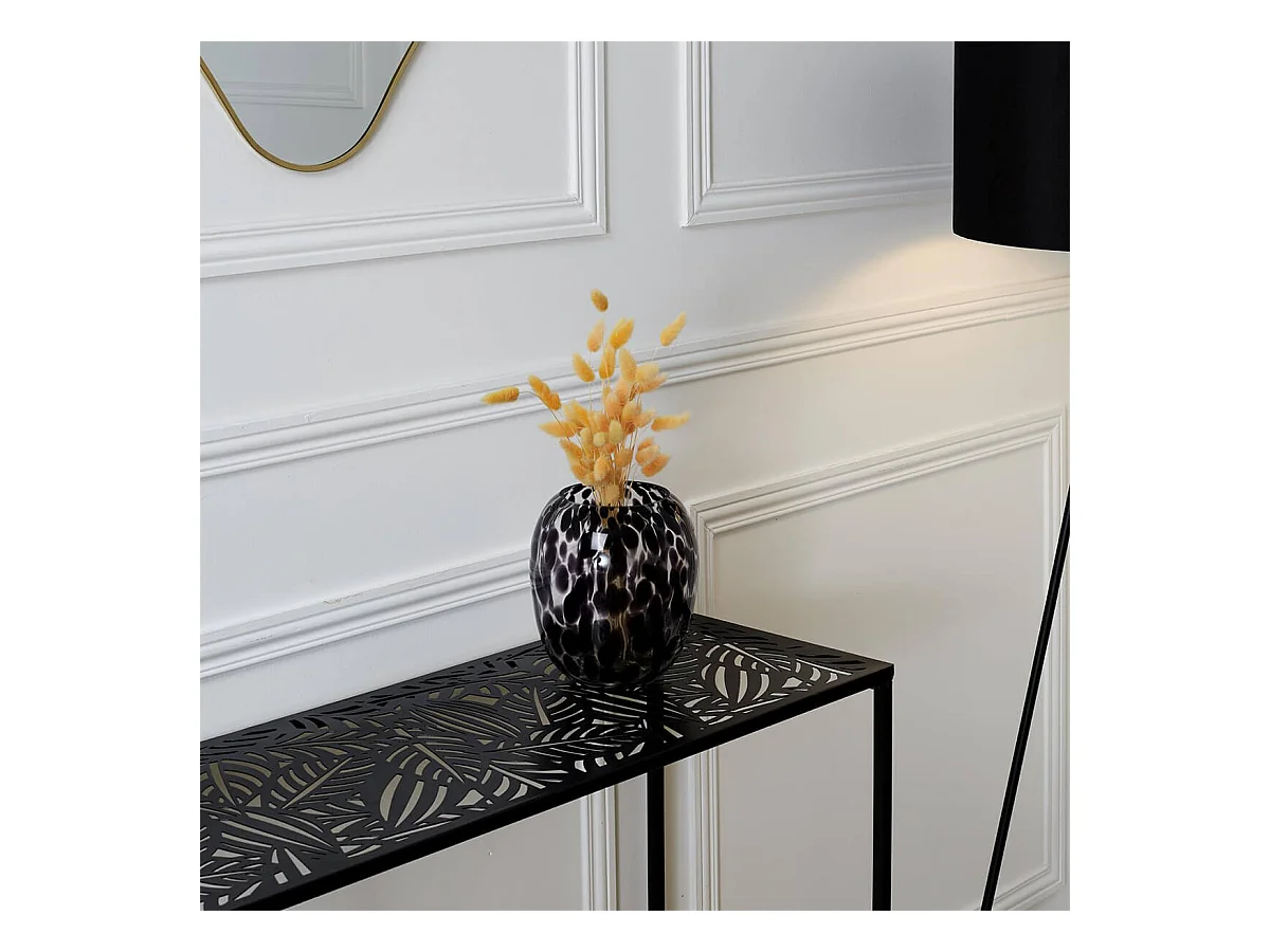 VANIA - Console en Métal Noir Plateau Motifs Feuilles